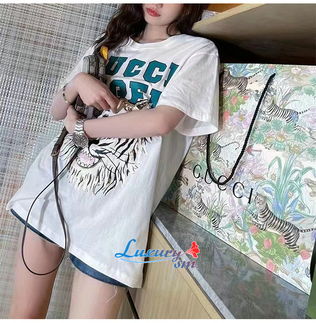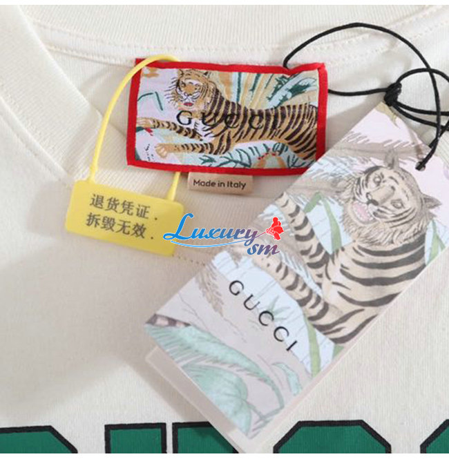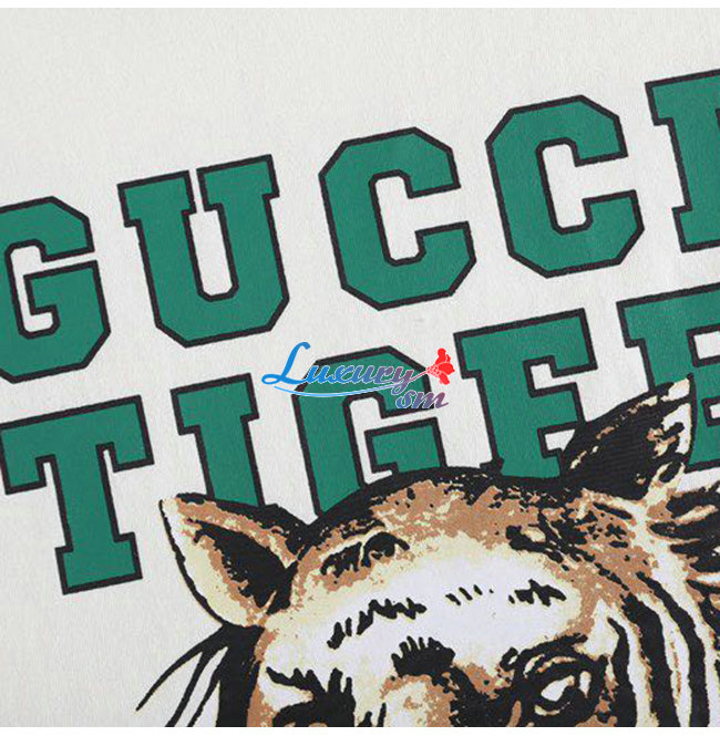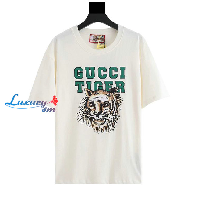 GUCC*-03073 구찌 아이보리 타이거 프린트 장식 티셔츠 남여공용