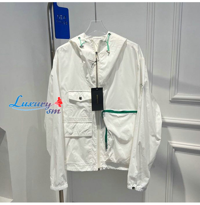 BOTTEGA VENE**-03292 보테가 베네타 화이트 트라이앵글 로고 바람막이 후드 재킷 남여공용