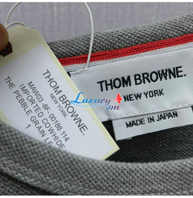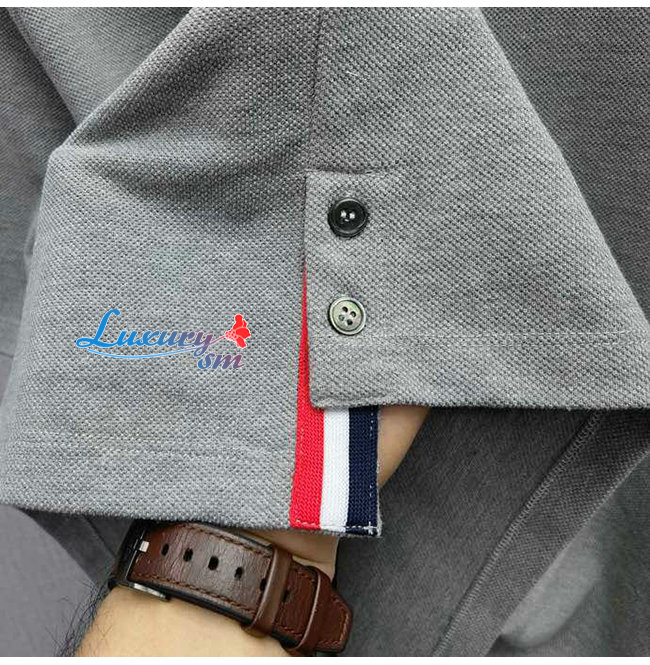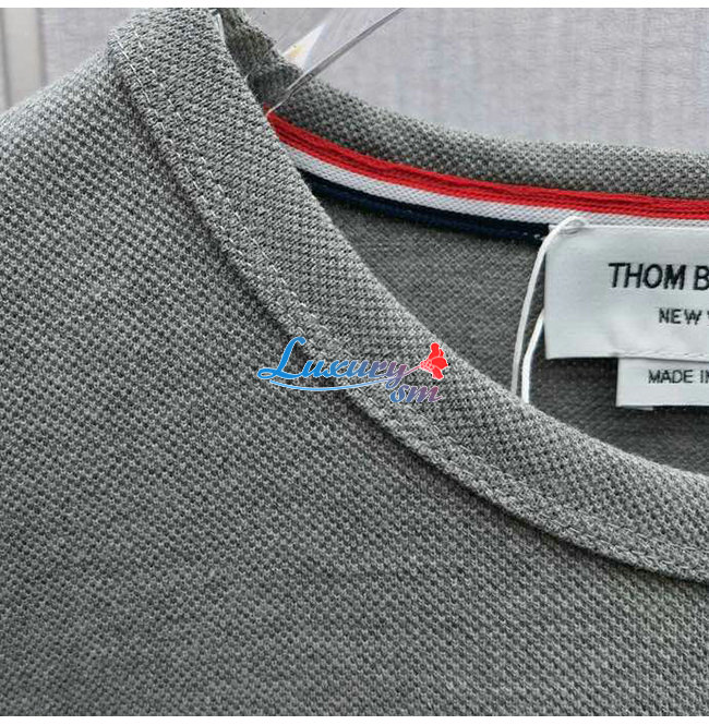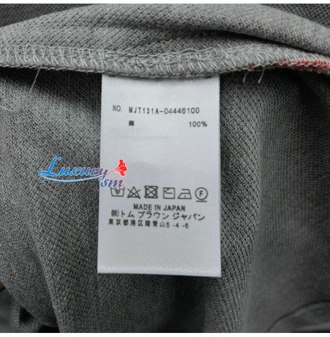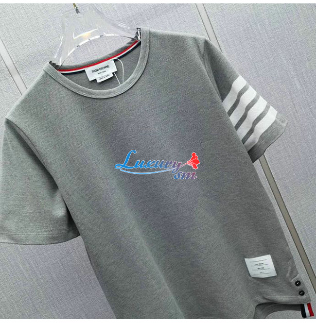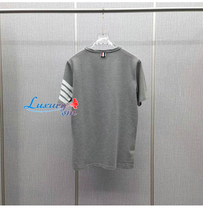 THOM BROW**-04013 톰 브라운 그레이 스트라이프 장식 티셔츠 남성용