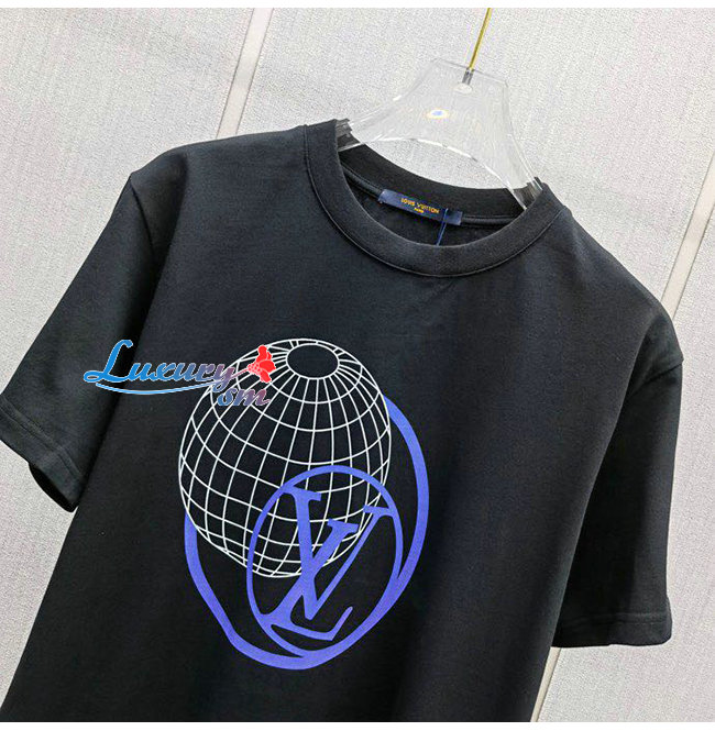 LOUIS VUITT**-05025 루이비통 블랙 LV 서클 시그니처 프린트 장식 티셔츠 남성용