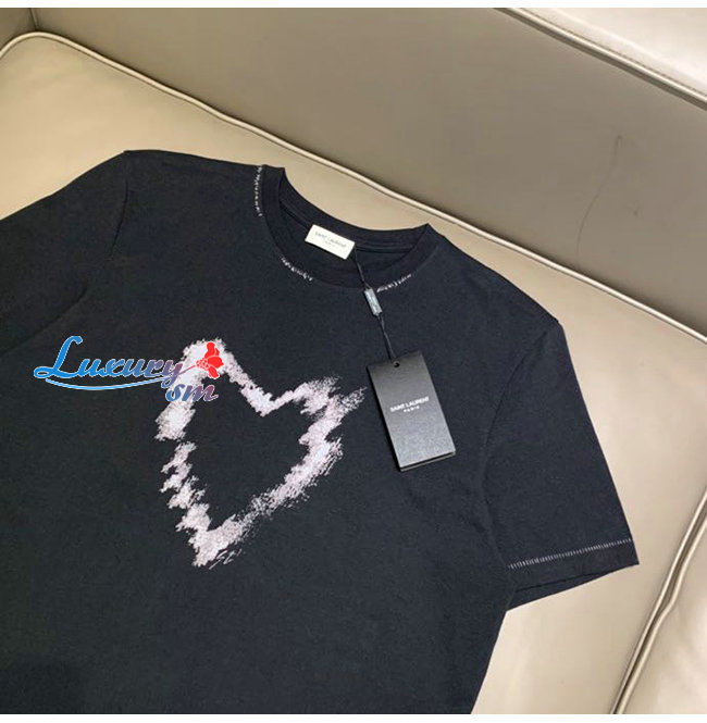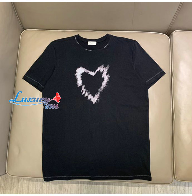 SAINT LAURENT-052011 생 로랑 블랙 하트 프린트 장식 티셔츠 남여공용
