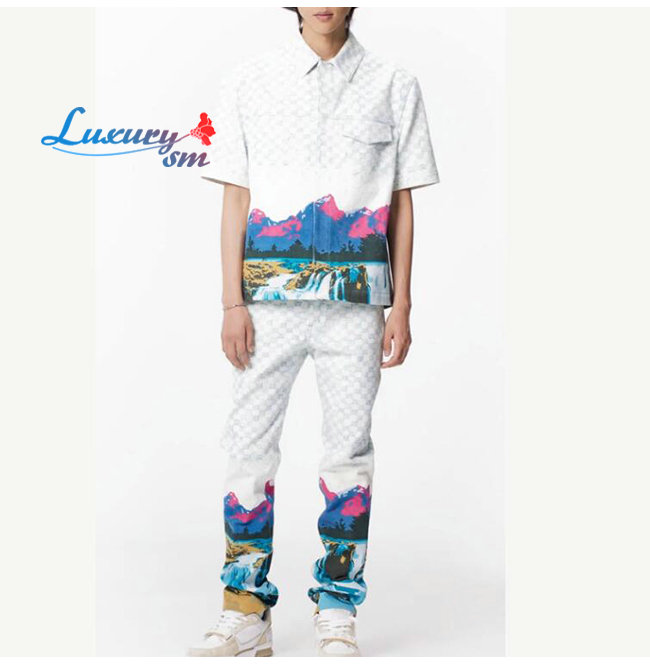LOUIS VUITTON-1AA5C2 루이비통 화이트 랜드스케이프 데님 셔츠 남여공용