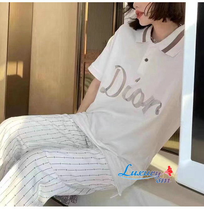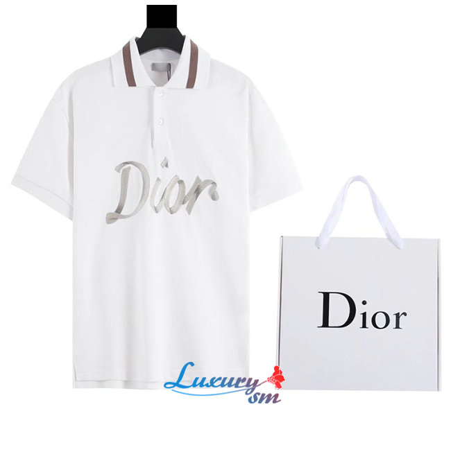 DIOR-07288 디올 화이트 Dior 47 프린트 장식 폴로 티셔츠 남여공용