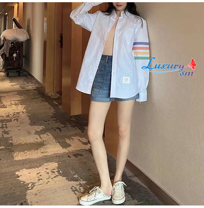 THOM BROWNE-08036 톰 브라운 화이트 스트라이프 장식 셔츠 남여공용