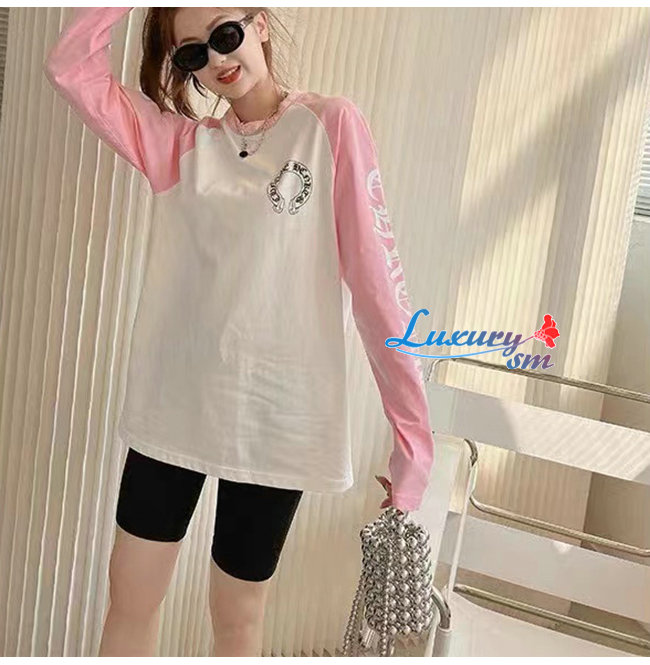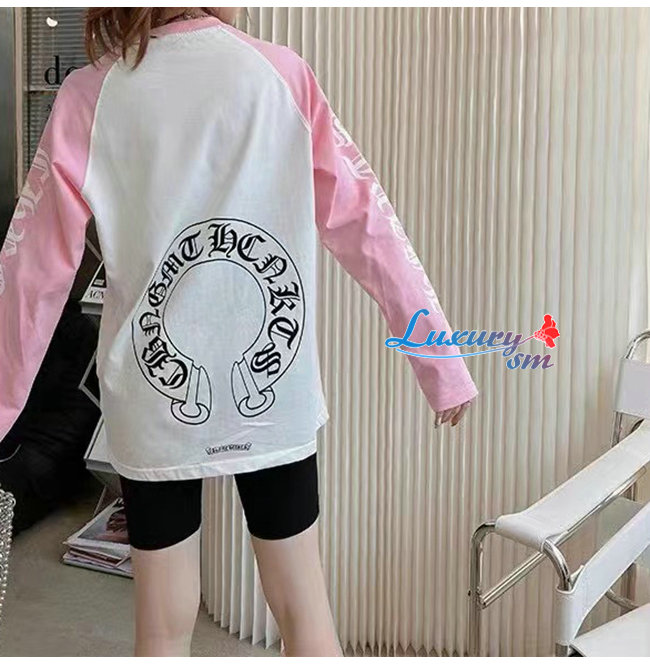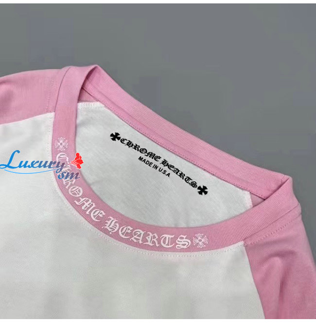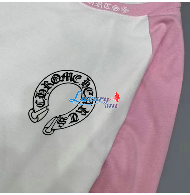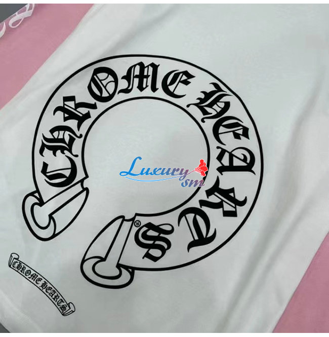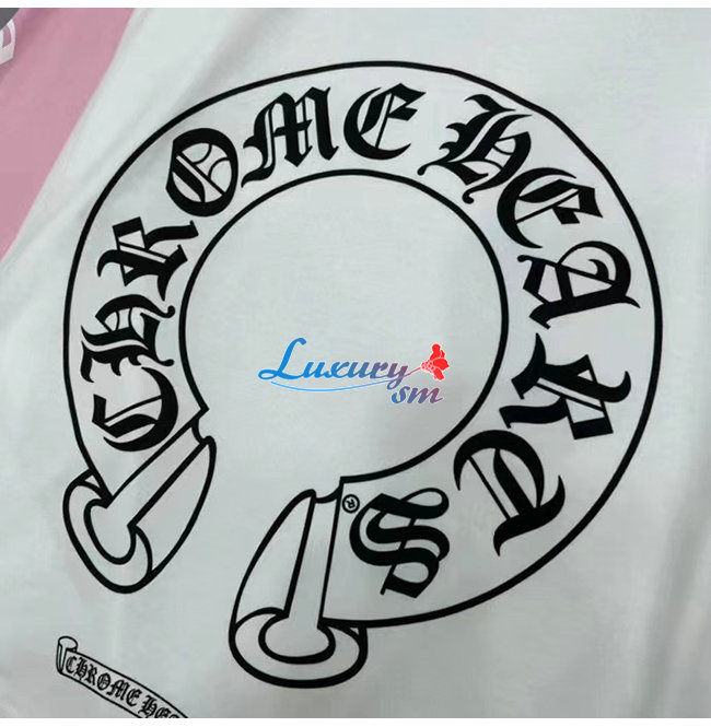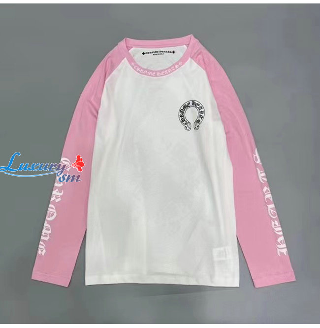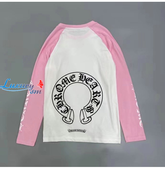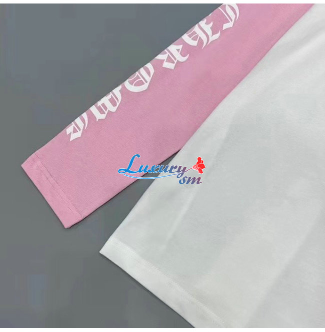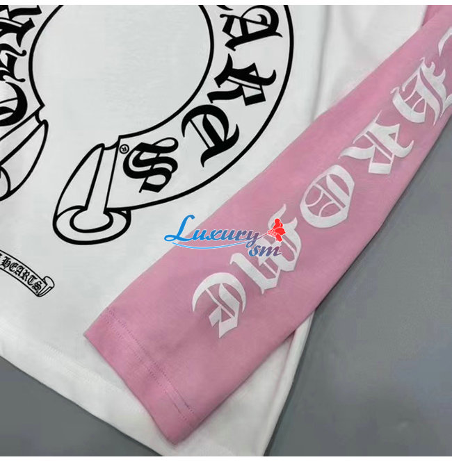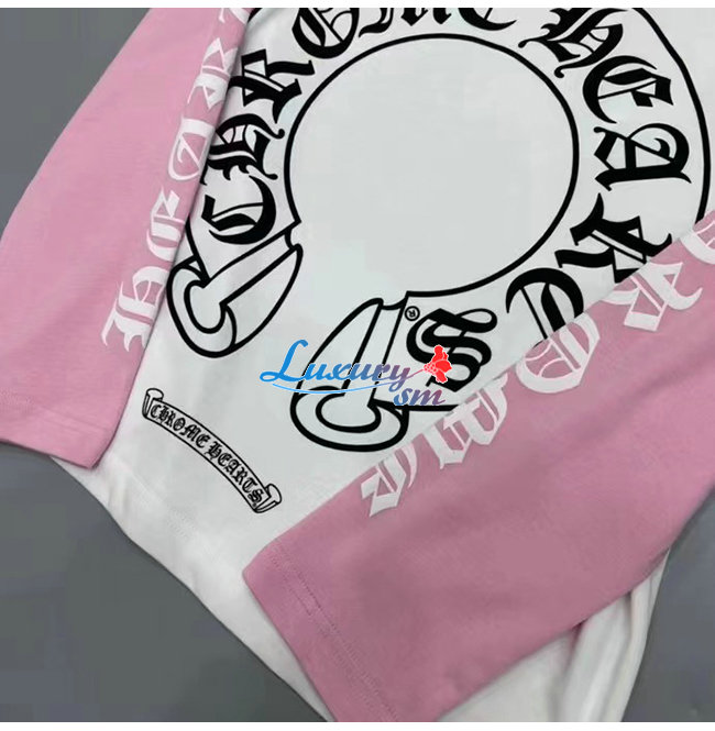 CHROMEHEARTS-09144 크롬하츠 핑크/화이트 프린트 장식 긴팔 티셔츠 남여공용
