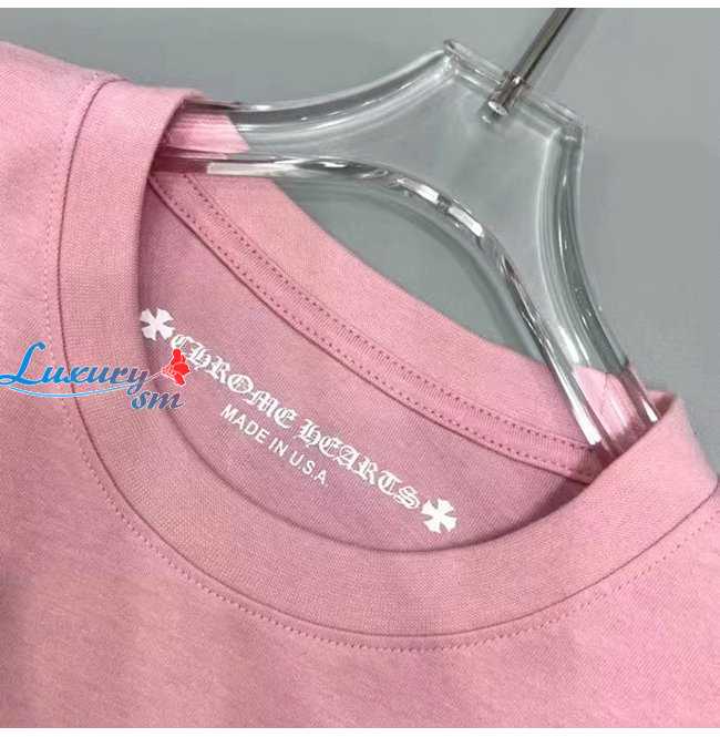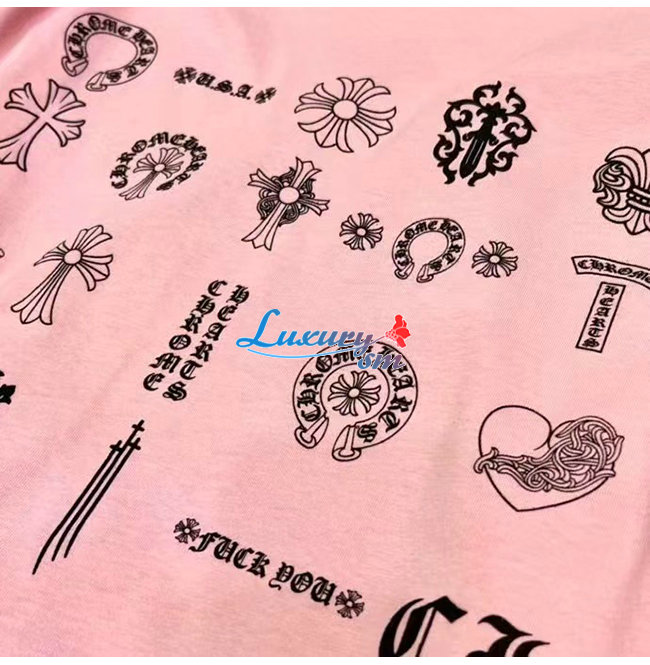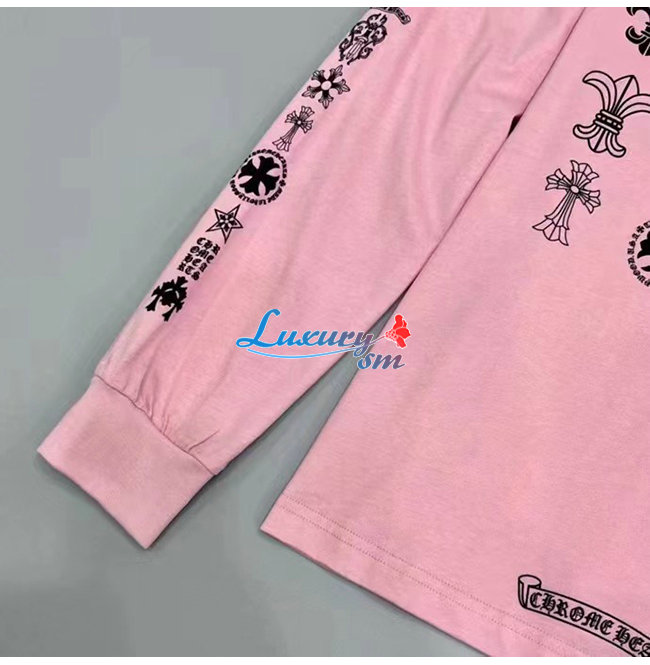CHROMEHEARTS-09146 크롬하츠 핑크 프린트 장식 긴팔 티셔츠 남여공용