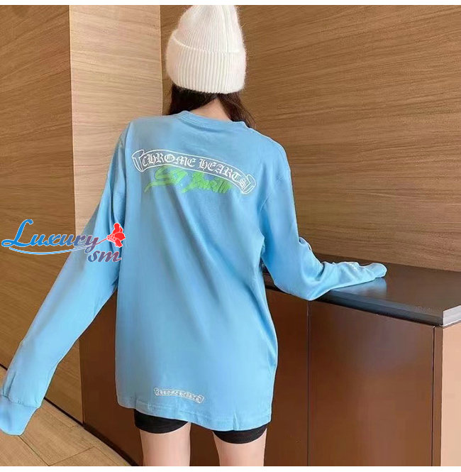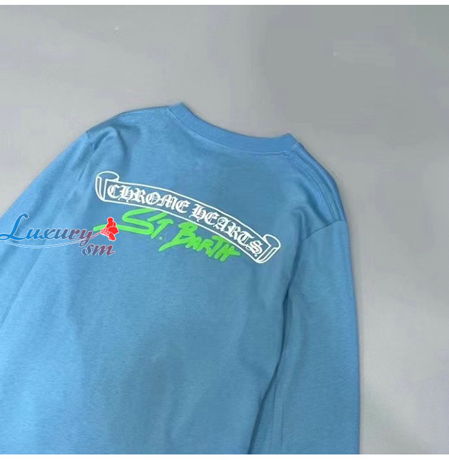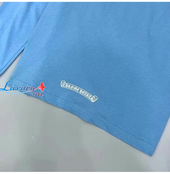 CHROMEHEARTS-09147 크롬하츠 블루 프린트 장식 긴팔 티셔츠 남여공용