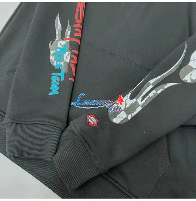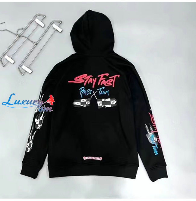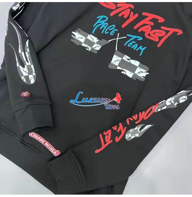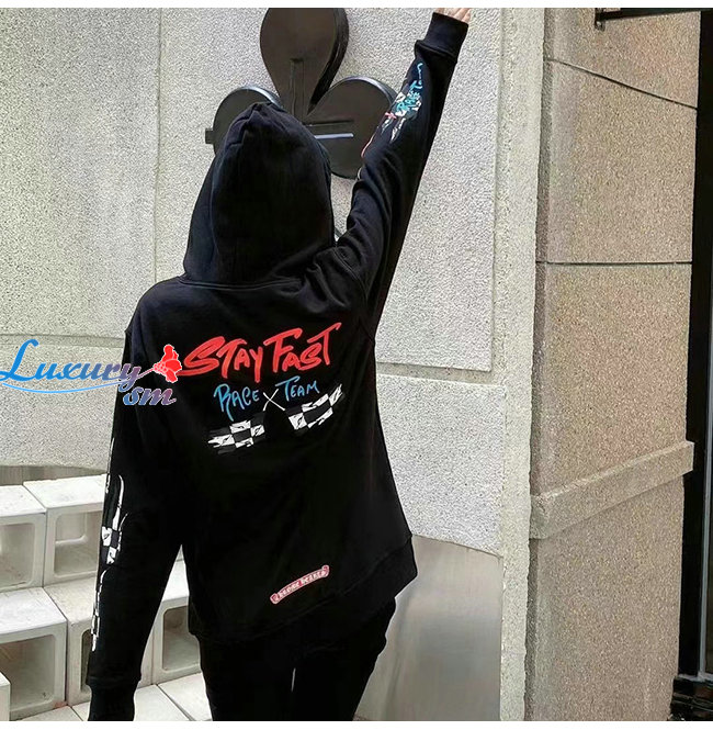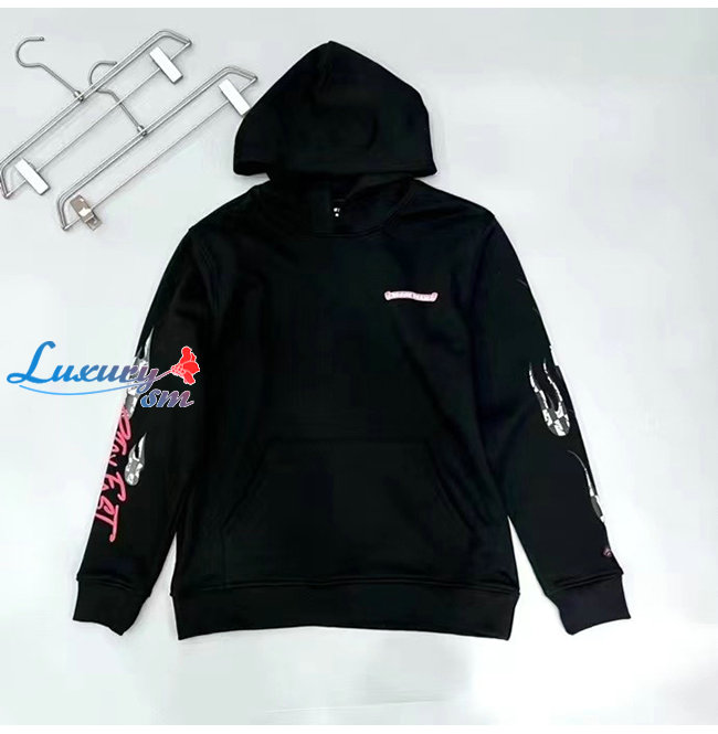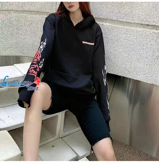 CHROMEHEARTS-091110 크롬하츠 블랙 프린트 장식 후드 티셔츠 남여공용