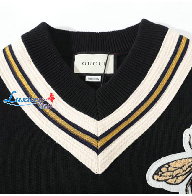 GUCCI-091315 구찌 블랙 꿀벌 아플리케 장식 V넥 스웨터 남여공용