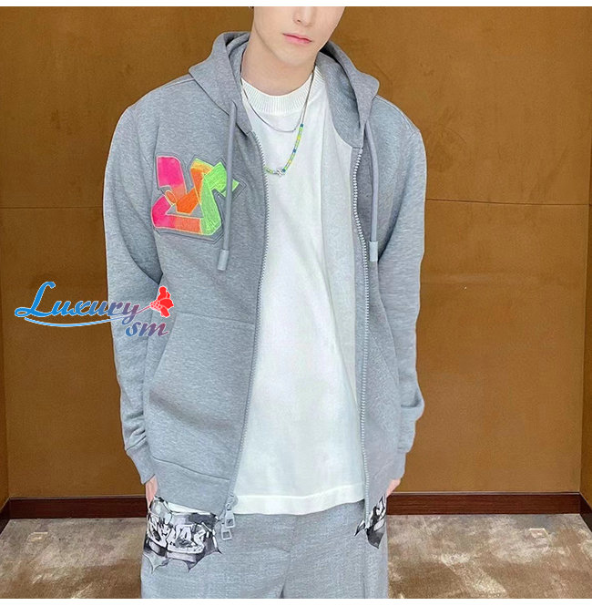 LOUIS VUITTON-09221 루이비통 그레이 아플리케 장식 후드 재킷 남여공용