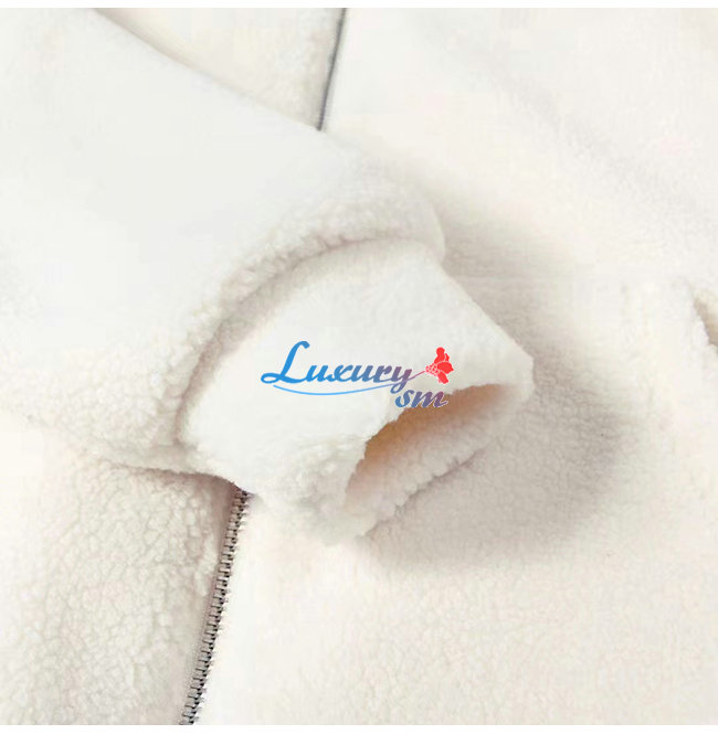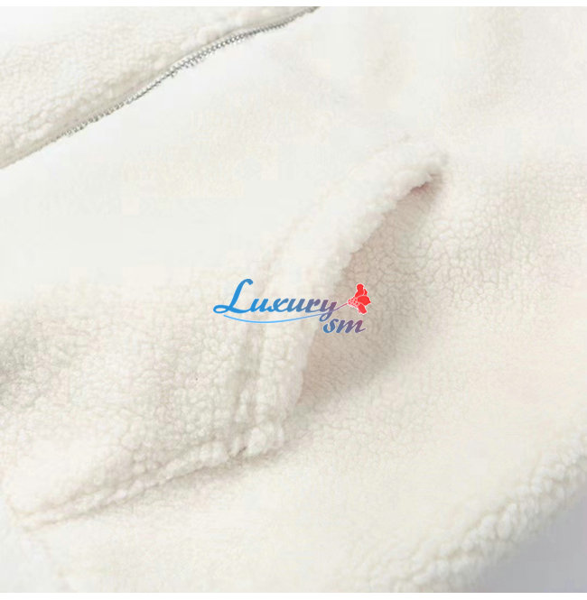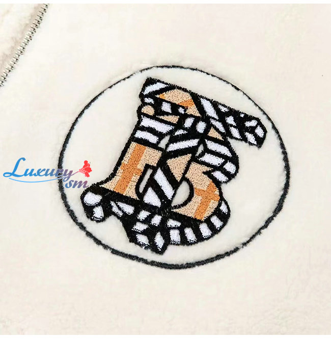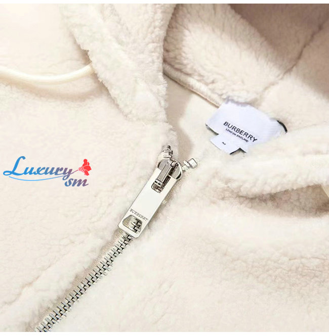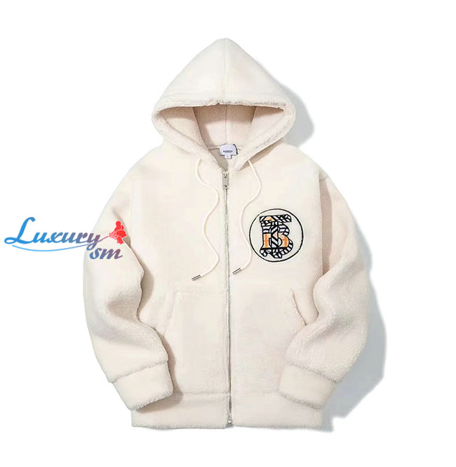 BURBERRY-10315 버버리 아이보리 시어링 TB 로고 아플리케 장식 후드 재킷 남여공용