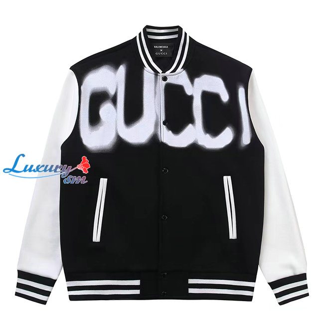 GUCCI-12262 구찌 블랙 구찌 X 발렌시아가 콜라보 프린트 장식 베이스볼 재킷 남여공용