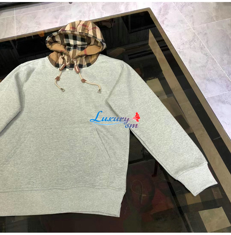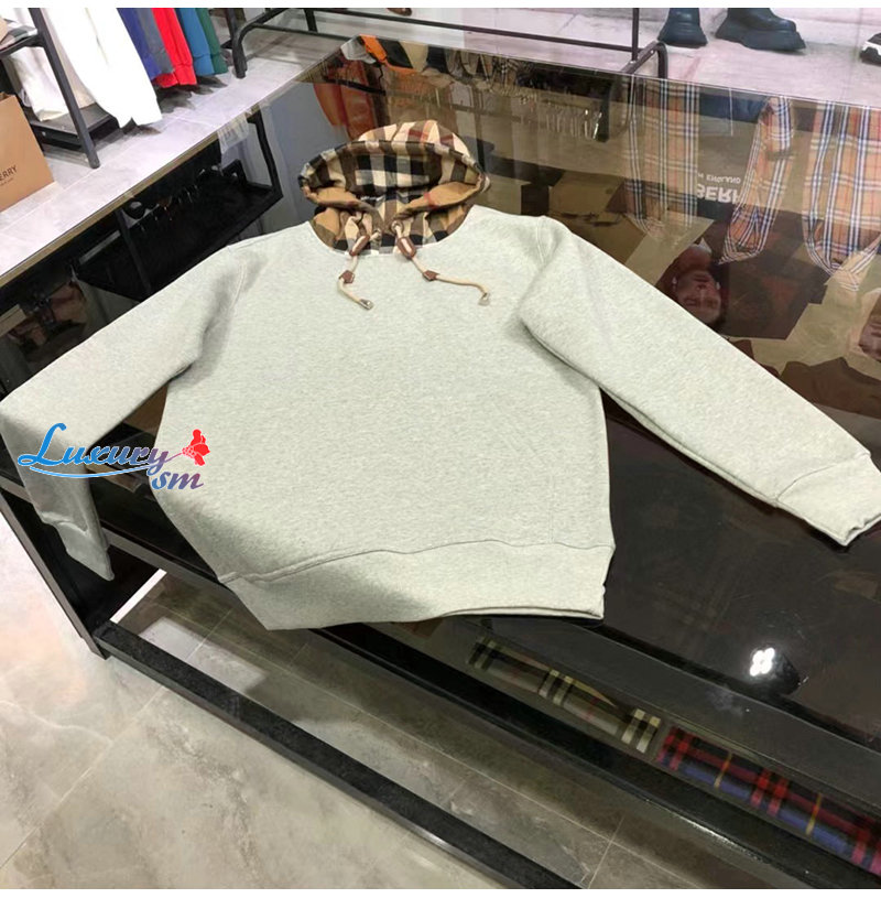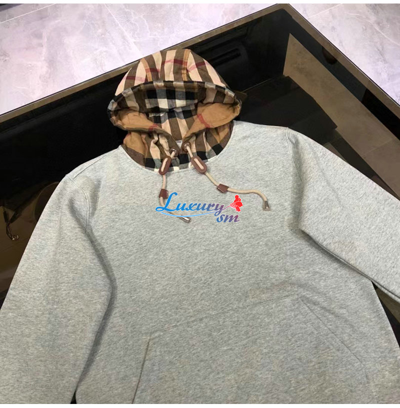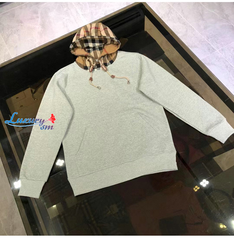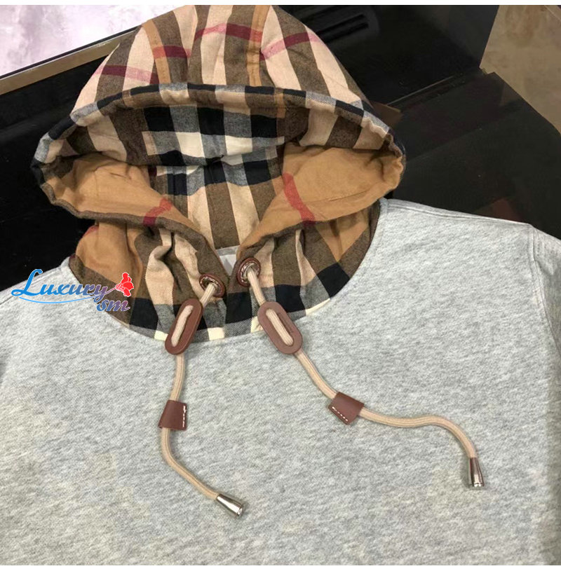BURBERRY-80577281 버버리 그레이 체크 후드 코튼 오버사이즈 후디 남여공용