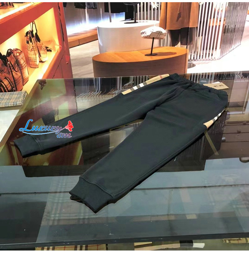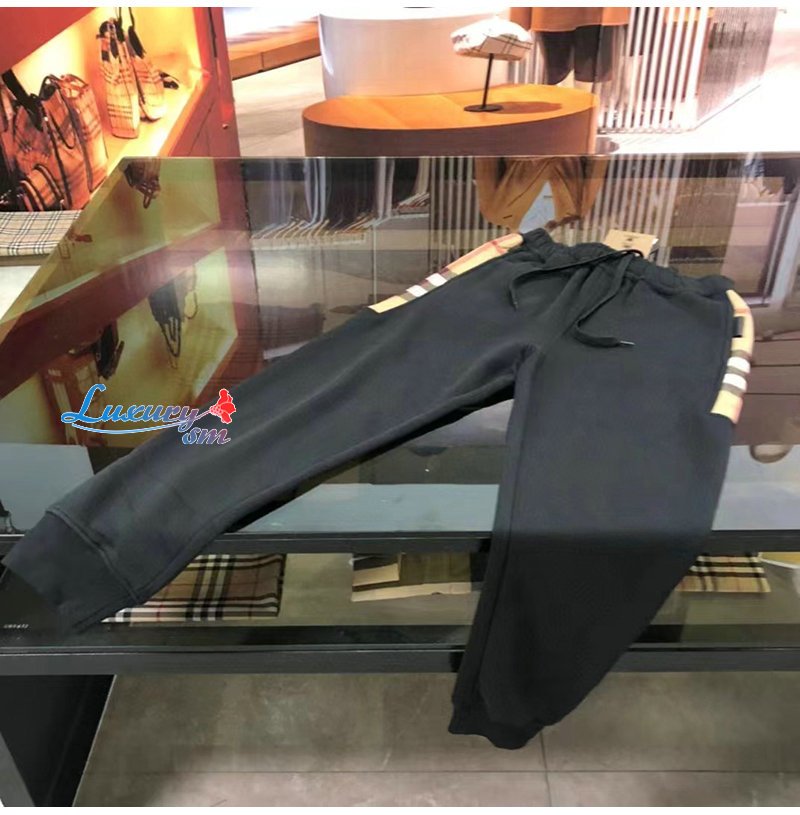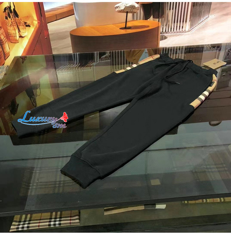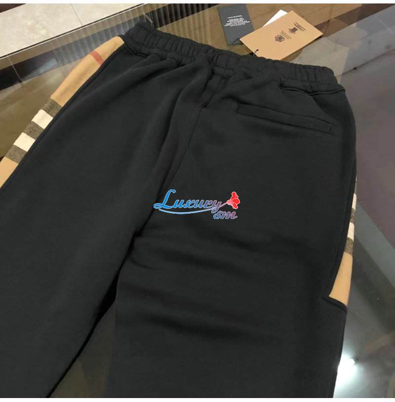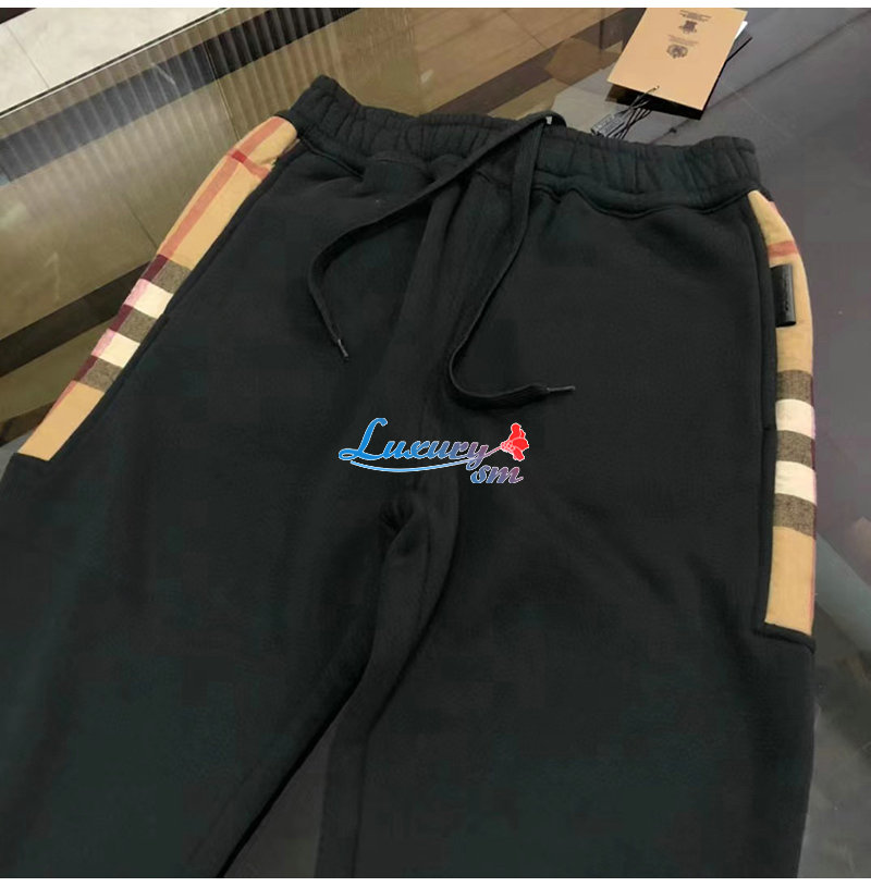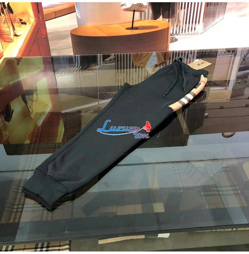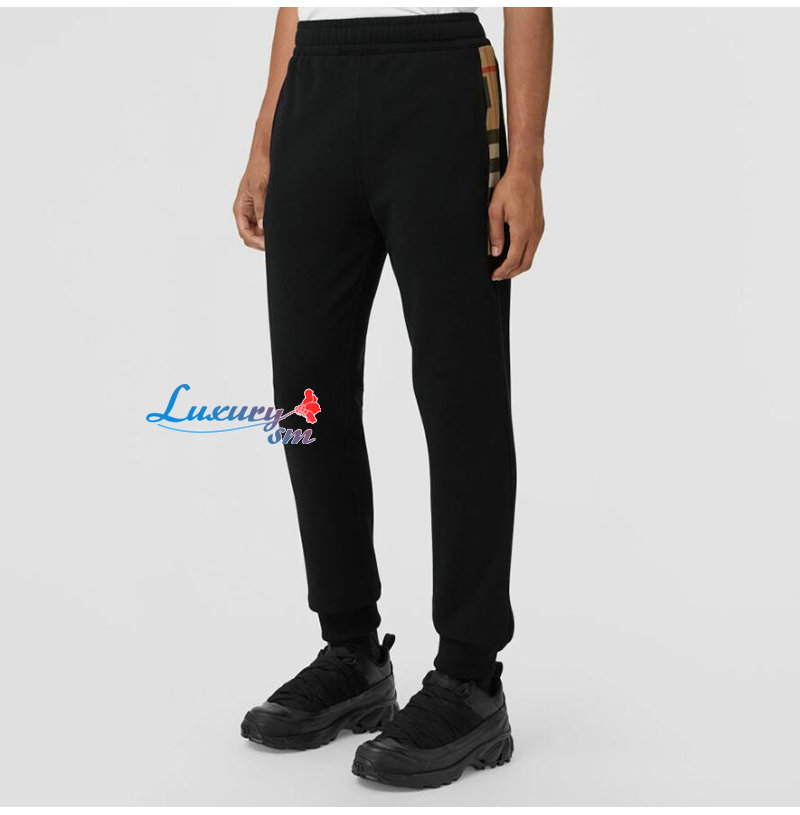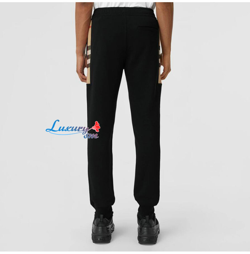 BURBERRY-80590661 버버리 블랙 체크 패널 코튼 조깅 팬츠 남성용