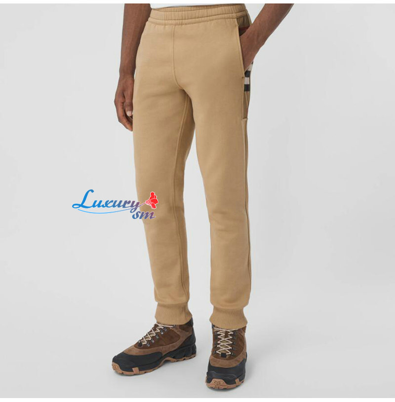 BURBERRY-80590661 버버리 카멜 체크 패널 코튼 조깅 팬츠 남성용
