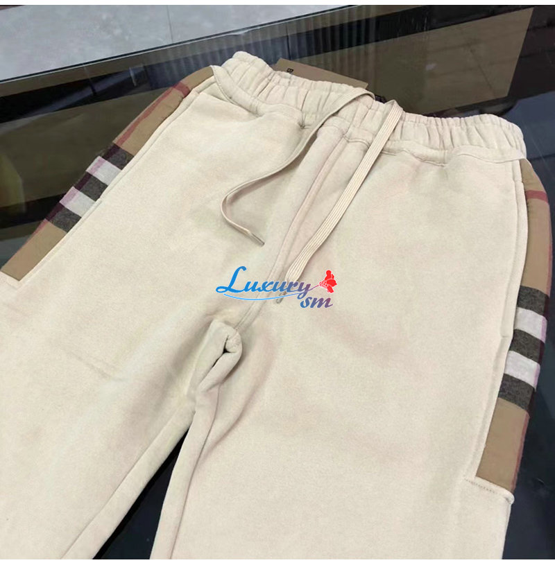 BURBERRY-80590661 버버리 베이지 체크 패널 코튼 조깅 팬츠 남성용