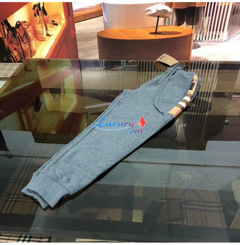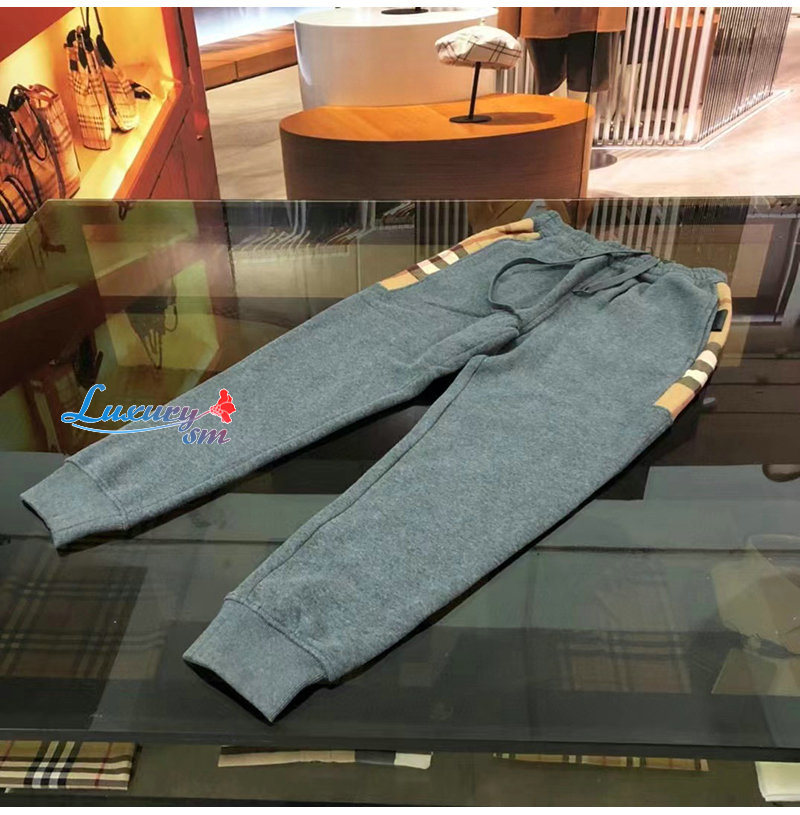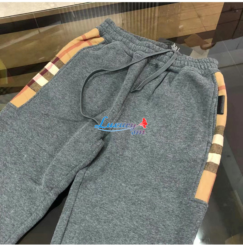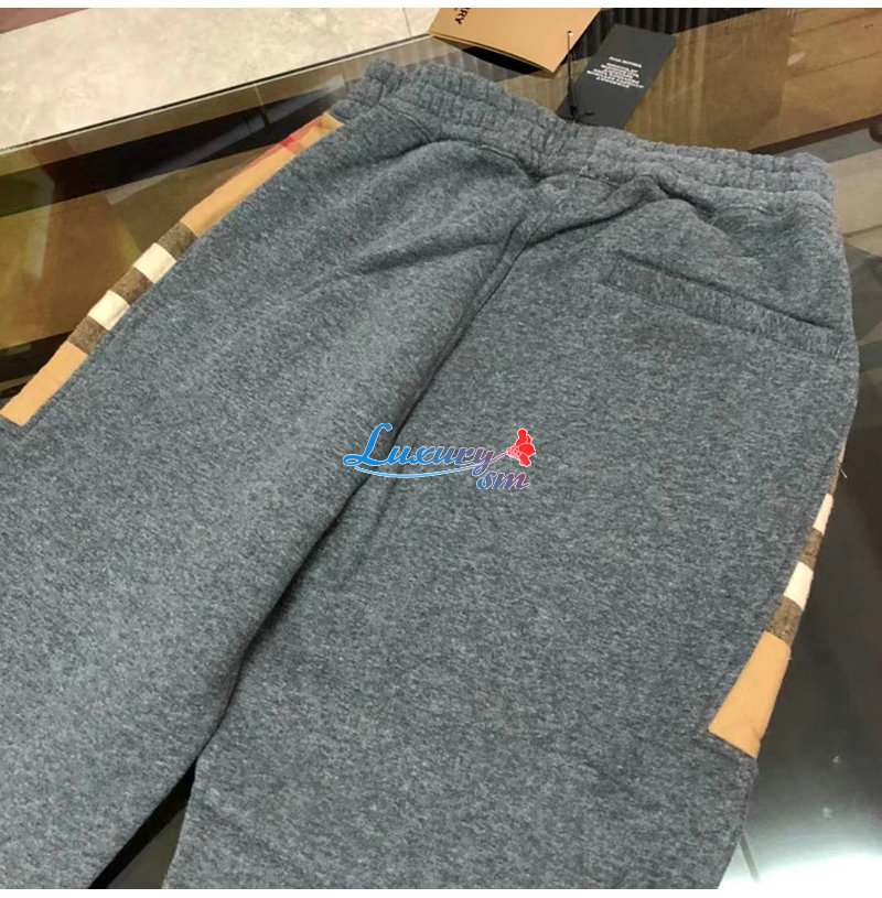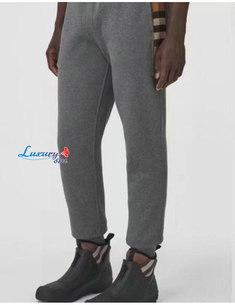 BURBERRY-80590661 버버리 그레이 체크 패널 코튼 조깅 팬츠 남성용