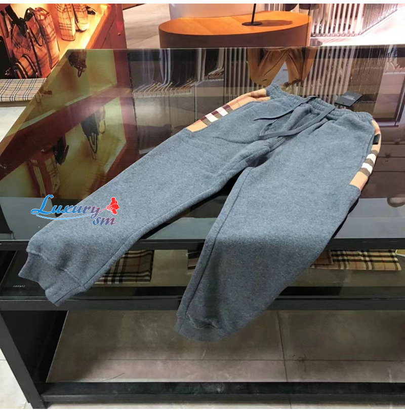 루프백 면 소재의 조깅 팬츠 버버리 체크가