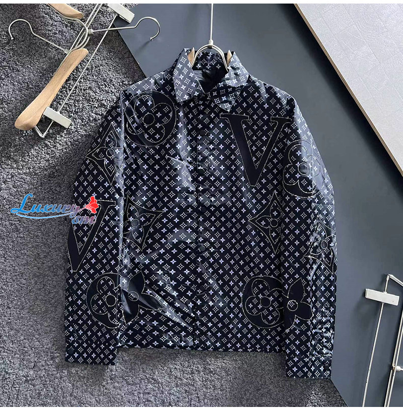 LOUIS VUITTON-02274 루이비통 블랙 모노그램 스터드 장식 셔츠 남성용