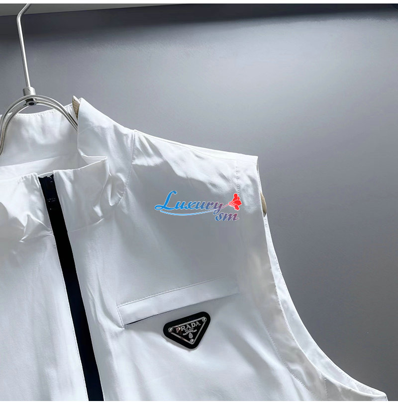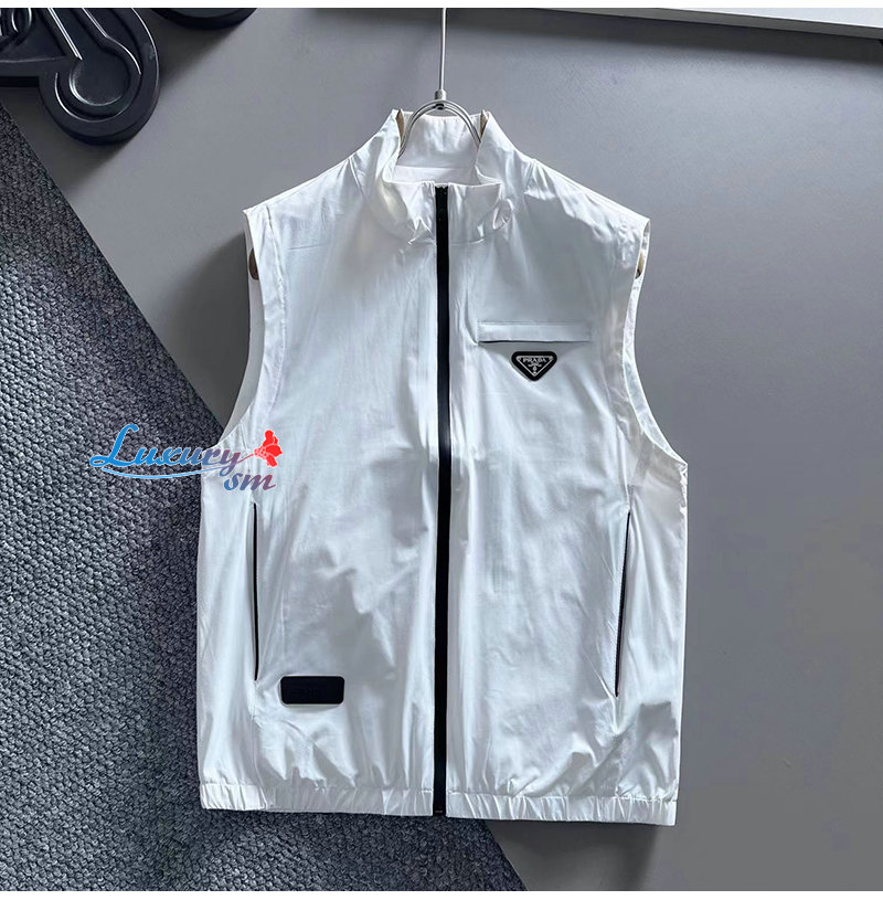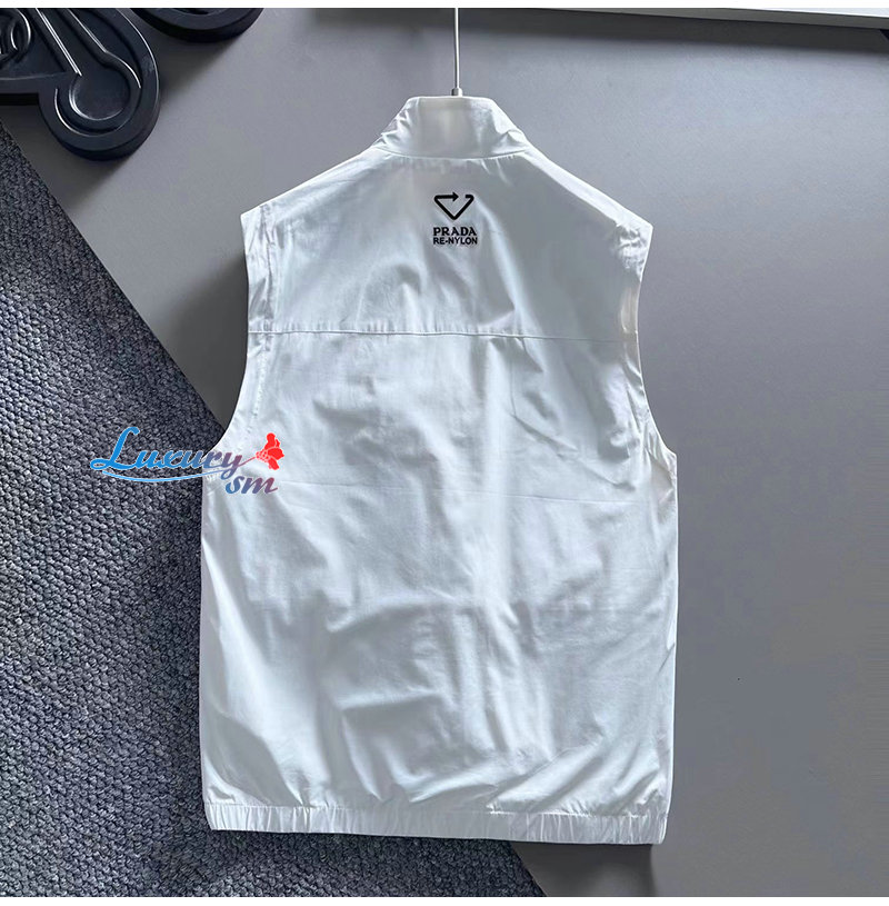 PRADA-022612 프라다 화이트 트라이앵글 로고 바람막이 조끼 남성용