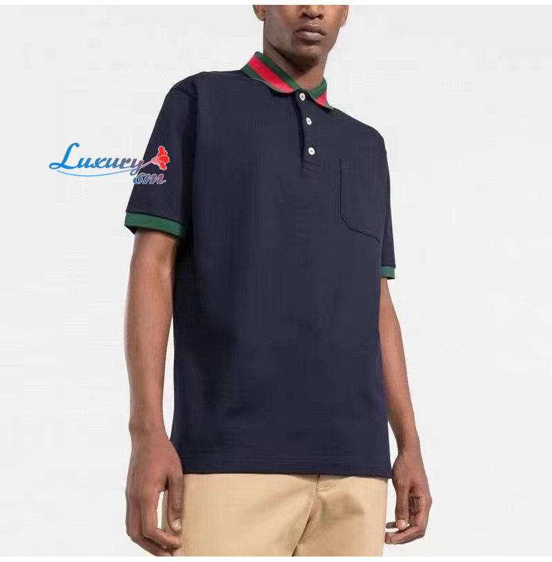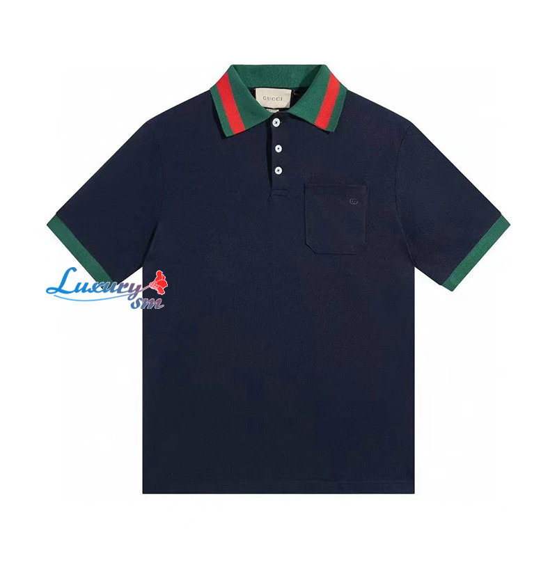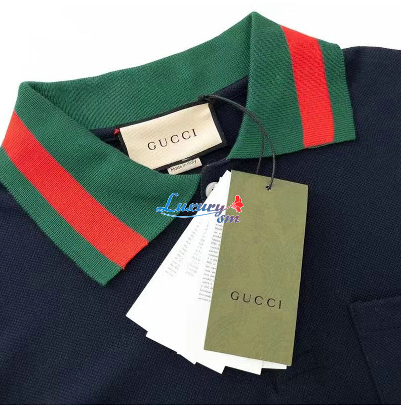 GUCCI-701735 4437 구찌 네이비 스트레치 코튼 피케 폴로 남성용