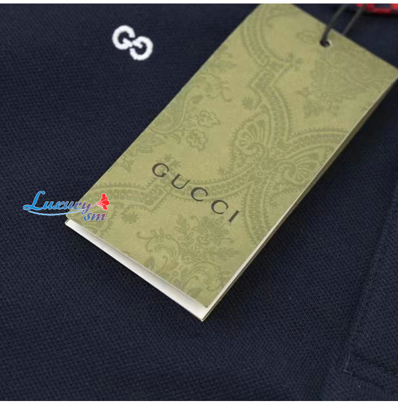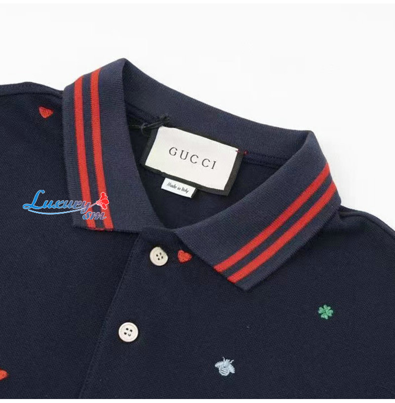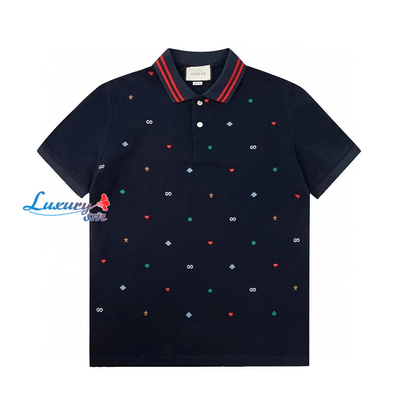 GUCCI-03081 구찌 네이비 아플리케 장식 폴로 티셔츠 남성용
