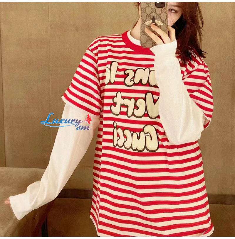 GUCCI-616036 6397 구찌 레드 스트라이프 코튼 저지 티셔츠 남여공용