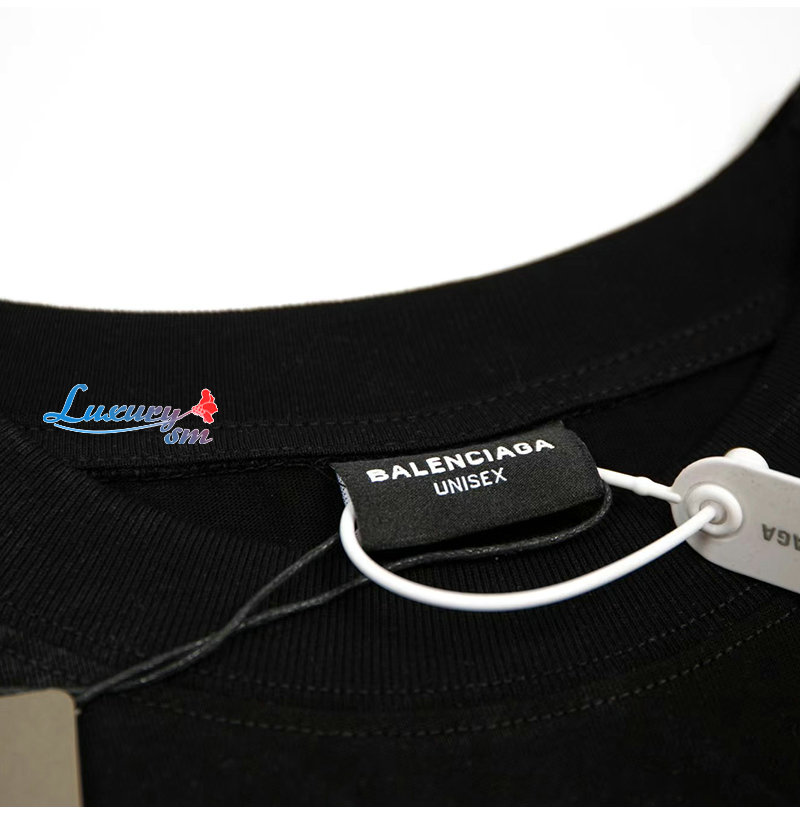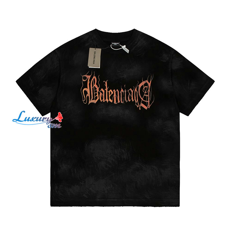 BALENCIAGA-05287 발렌시아가 블랙 프린트 장식 빈티지 티셔츠 남여공용