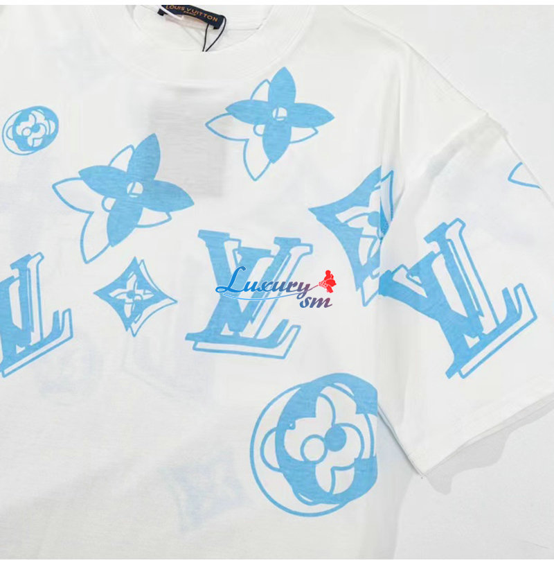 LOUIS VUITTON-06011 루이비통 화이트 모노그램 프린트 장식 티셔츠 남여공용
