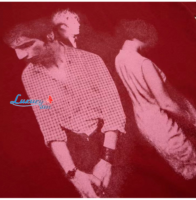 BURBERRY-06056 버버리 레드 프린트 장식 티셔츠 남여공용