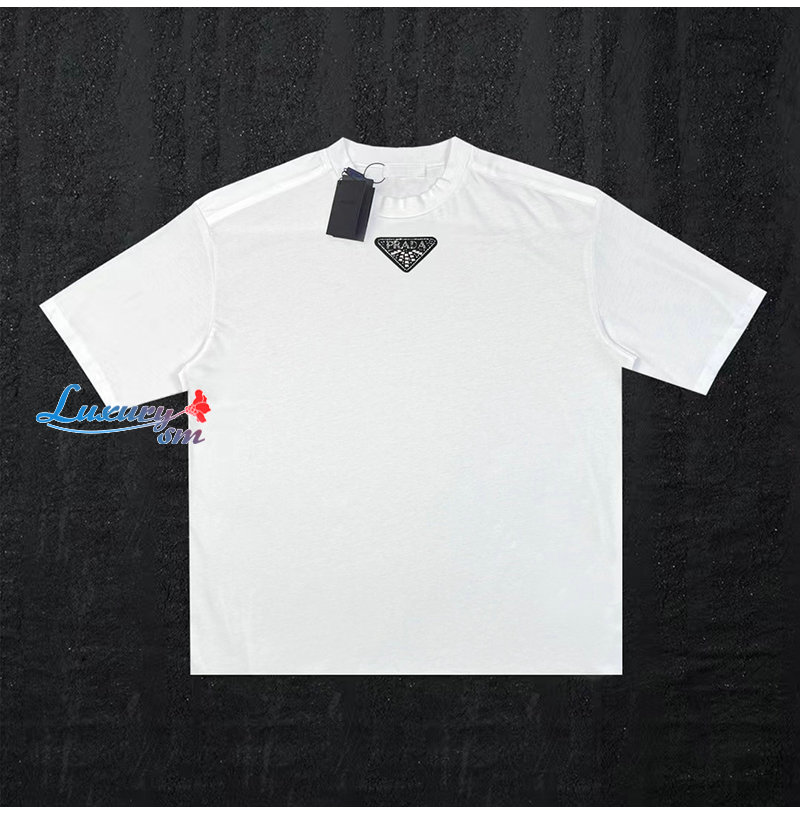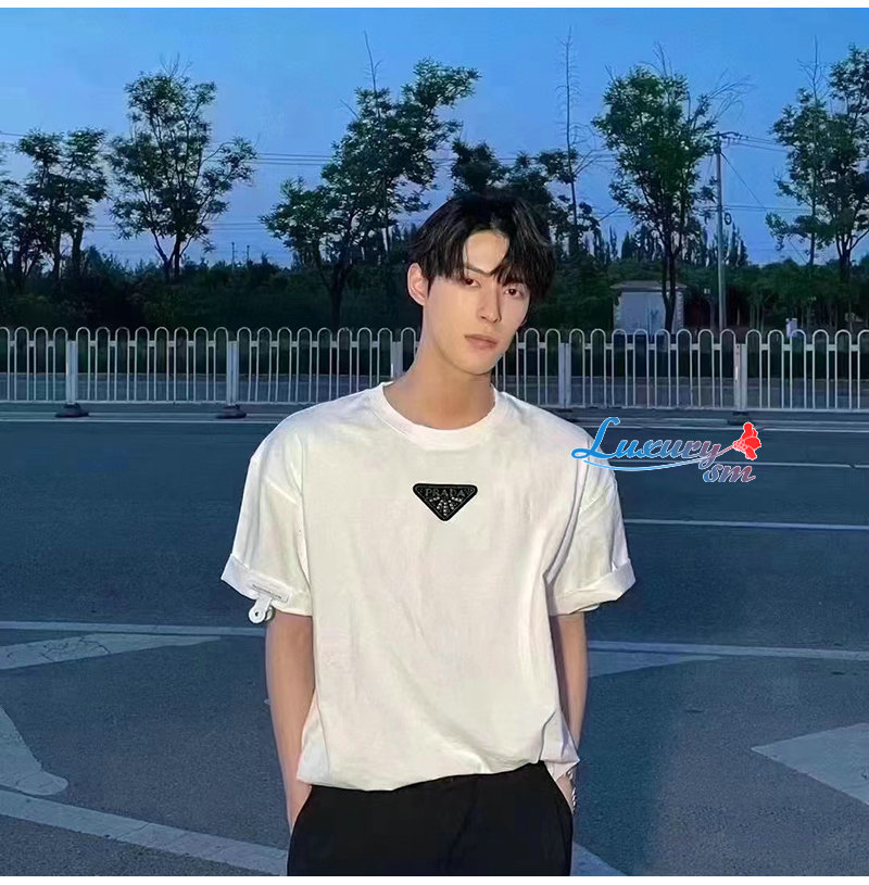 PRADA-06196 프라다 화이트 트라이앵글 로고 티셔츠 남성용