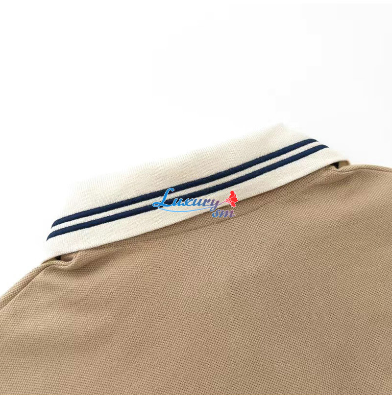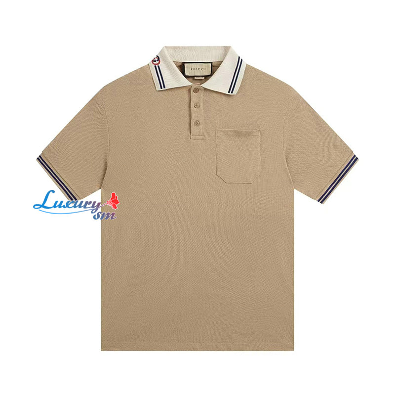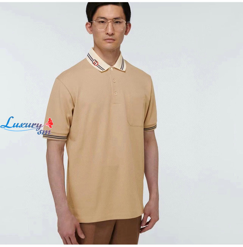 GUCCI-07219 구찌 베이지 스트라이프 장식 폴로 티셔츠 남성용