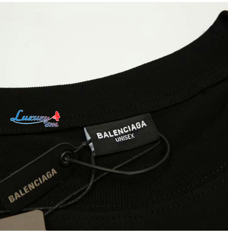 BALENCIAGA-07259 발렌시아가 블랙 프린트 장식 티셔츠 남여공용