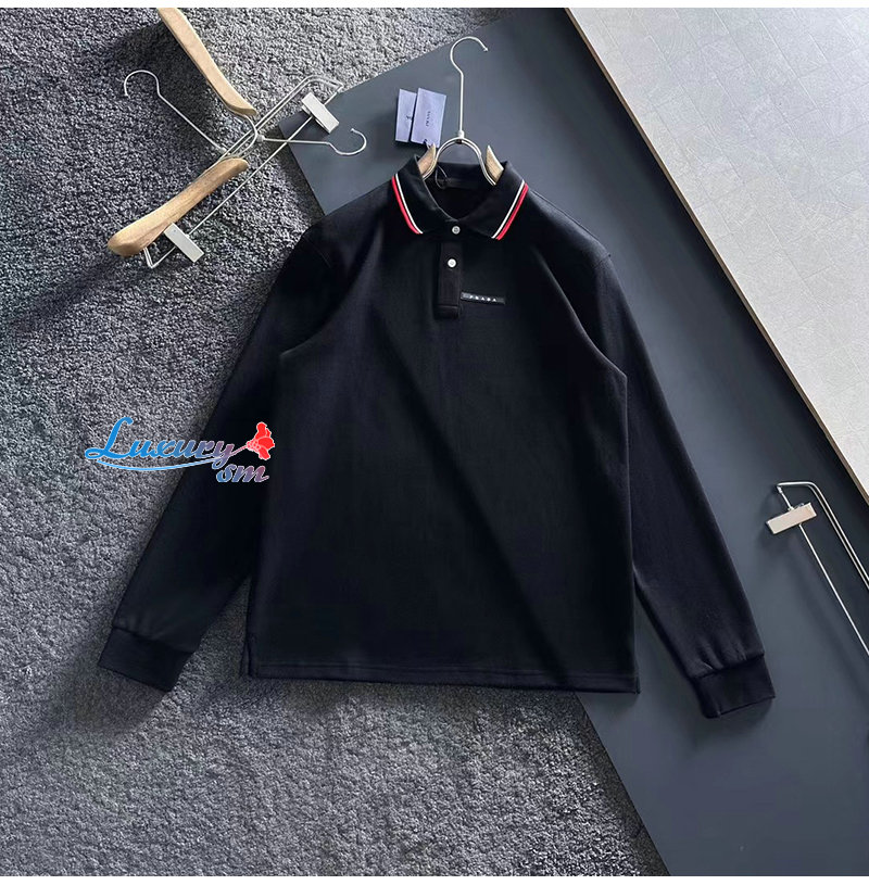 PRADA-08048 프라다 블랙 코튼 긴팔 폴로 티셔츠 남성용