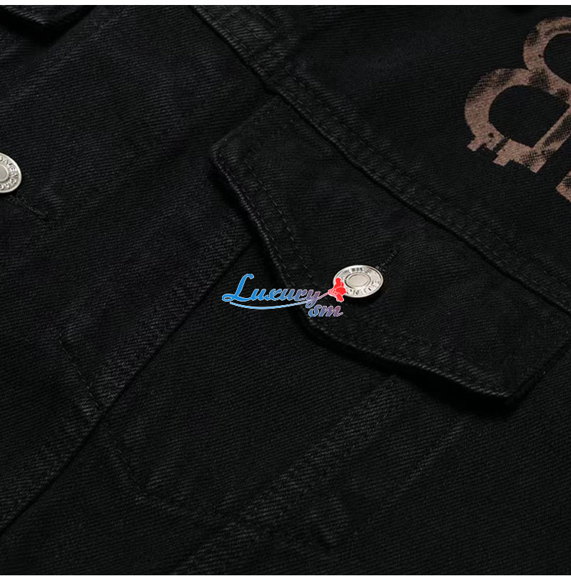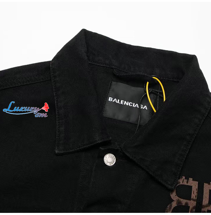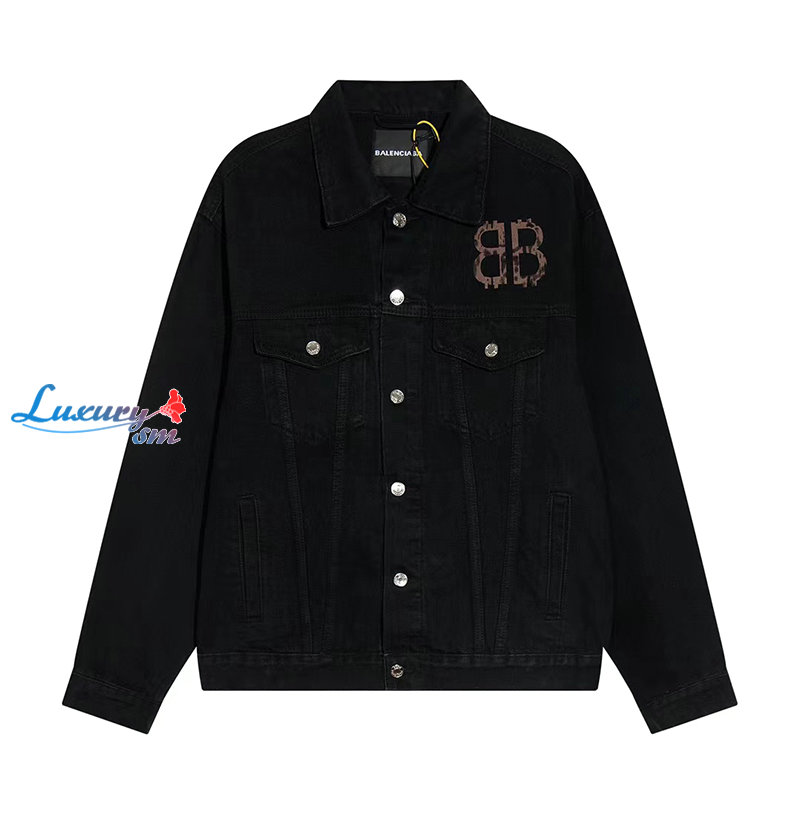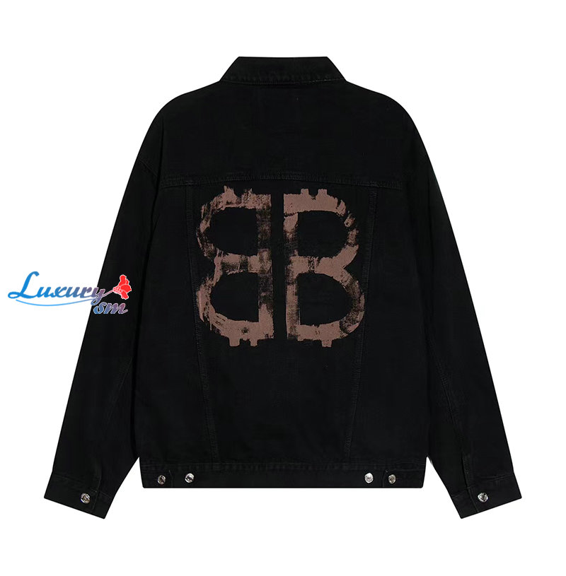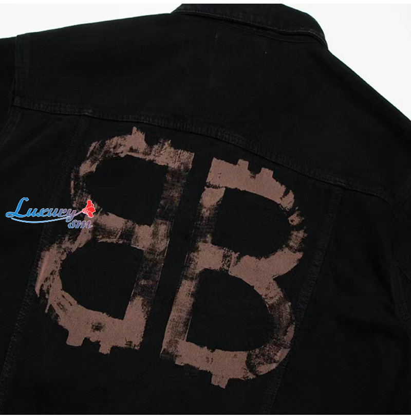 BALENCIAGA-08091 발렌시아가 블랙 BB 프린트 장식 데님 셔츠 남여공용