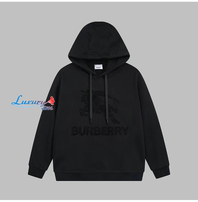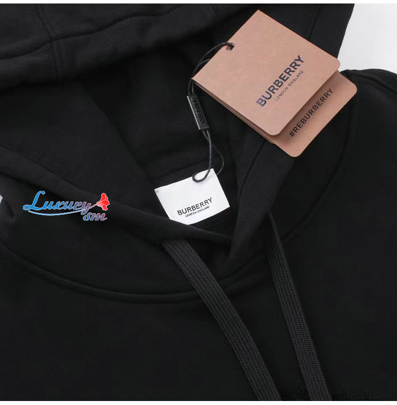BURBERRY-08133 버버리 블랙 아플리케 장식 후드 티셔츠 남성용