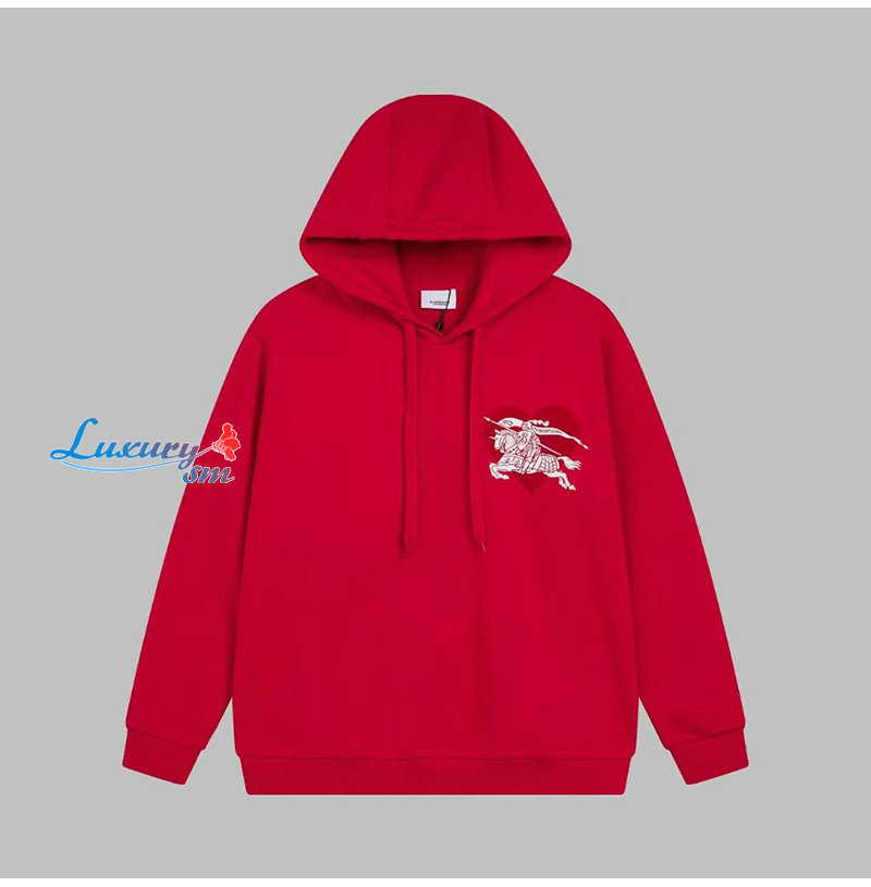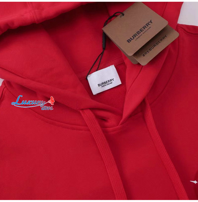 BURBERRY-08136 버버리 레드 프린트 장식 후드 티셔츠 남성용