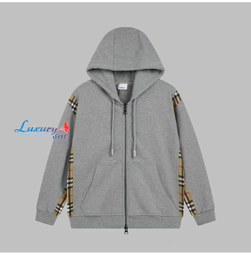 BURBERRY-08139 버버리 그레이 체크 무늬 디테일 후드 재킷 남성용
