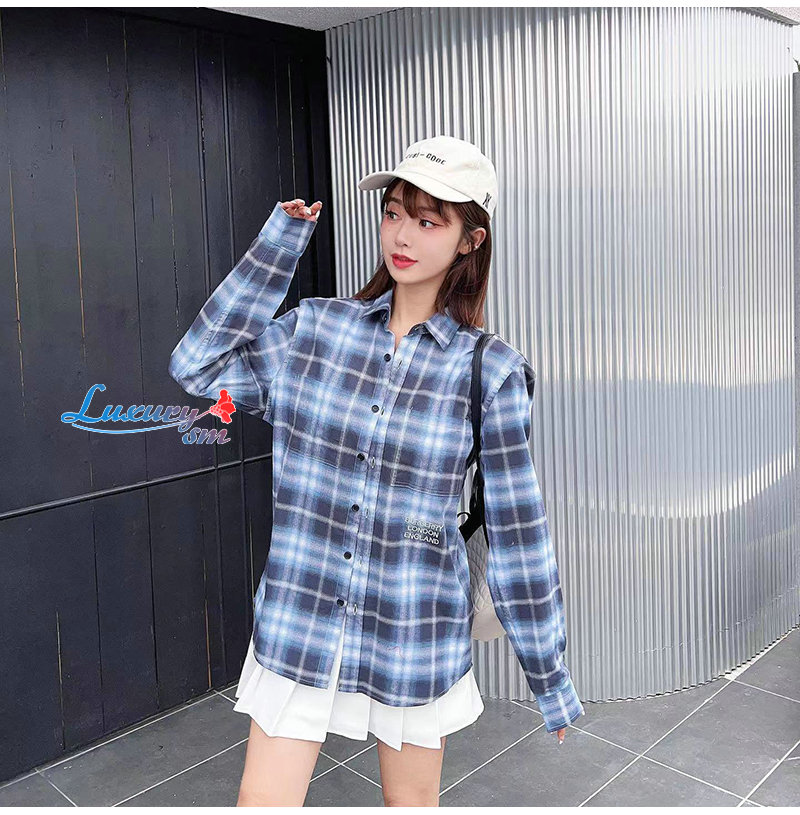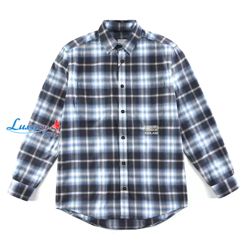 BURBERRY-08177 버버리 블루 울 체크 무늬 셔츠 남여공용