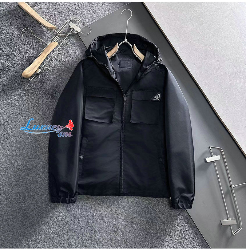 PRADA-091411 프라다 블랙 트라이앵글 로고 바람막이 후드 재킷 남성용