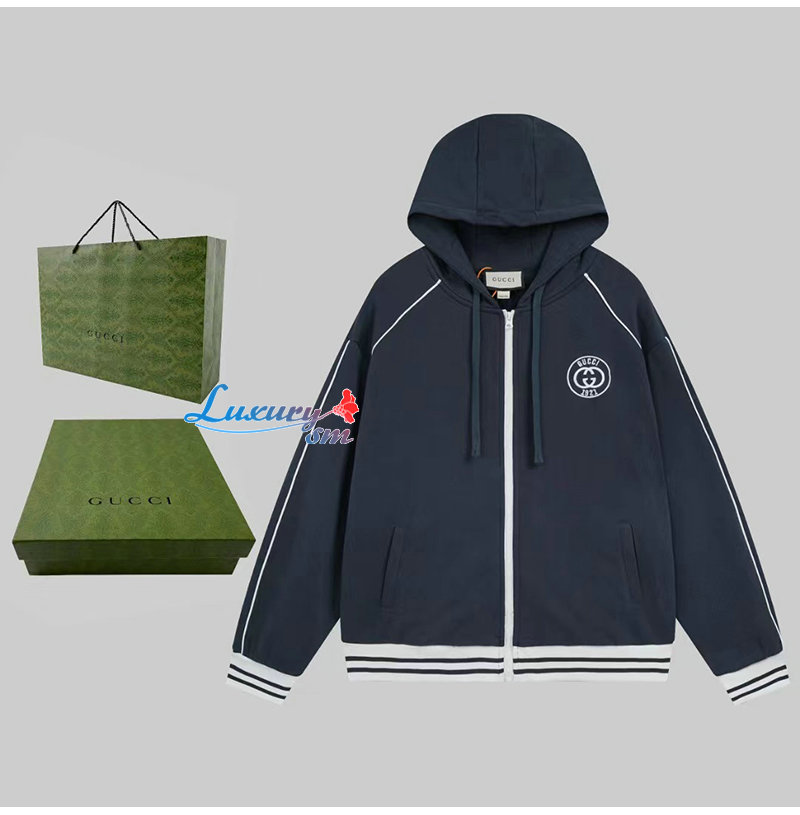 GUCCI-09246 구찌 네이비 GG 아플리케 장식 후드 재킷 남여공용