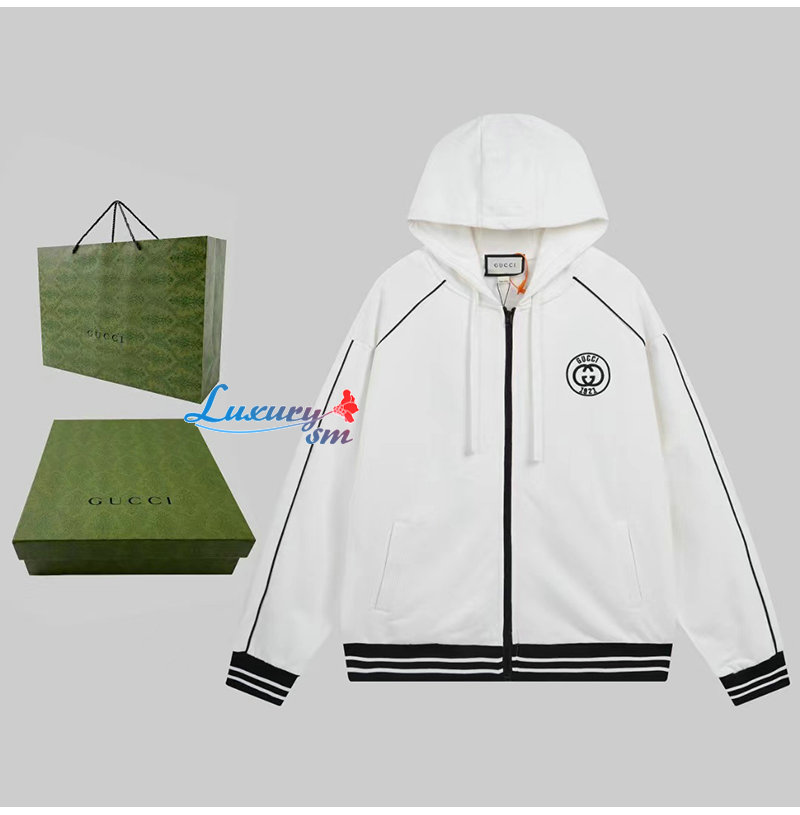 GUCCI-09247 구찌 화이트 GG 아플리케 장식 후드 재킷 남여공용