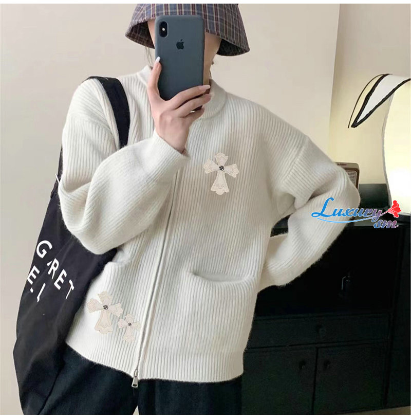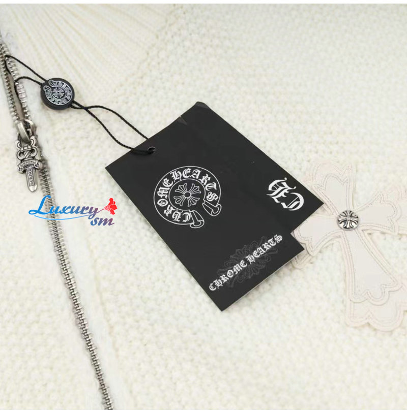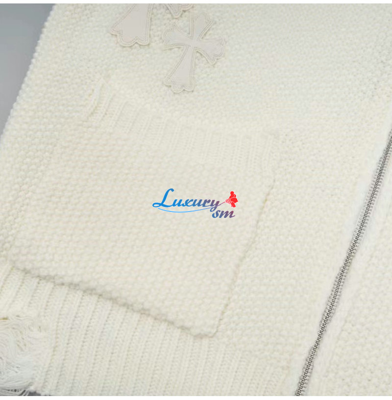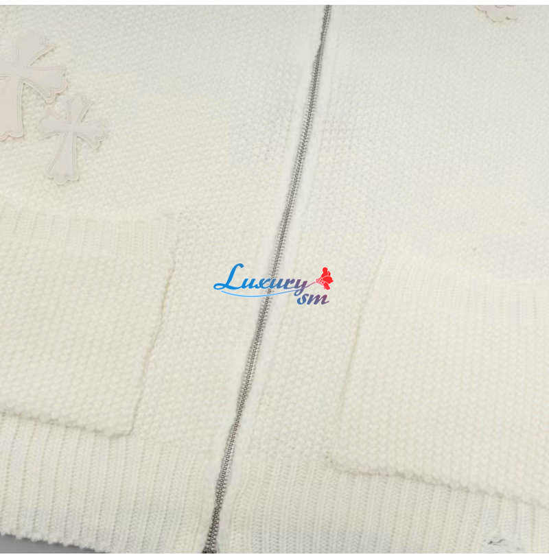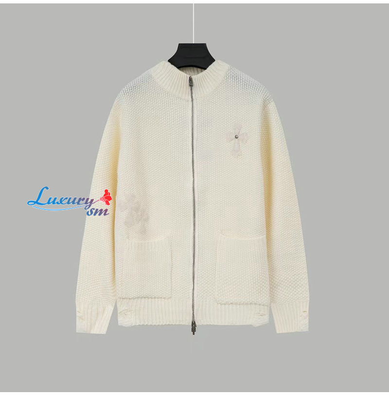 CHROMEHEARTS-10043 크롬하츠 아이보리 아플리케 장식 니트 재킷 남여공용