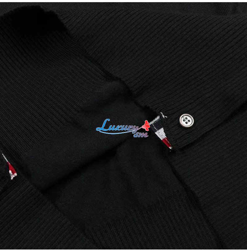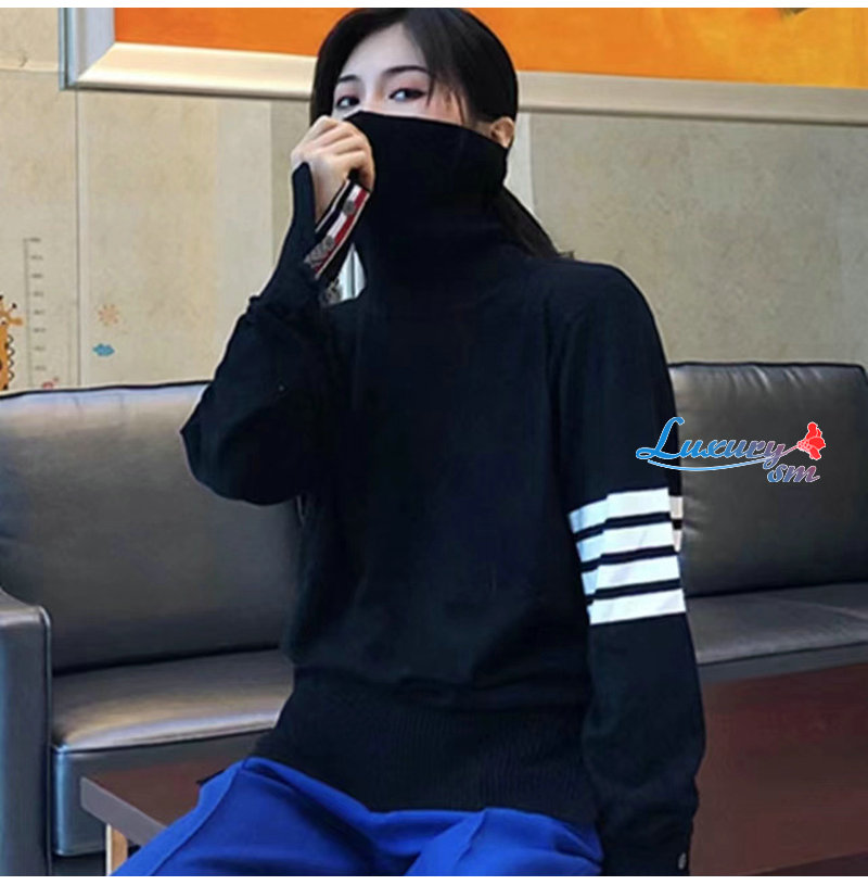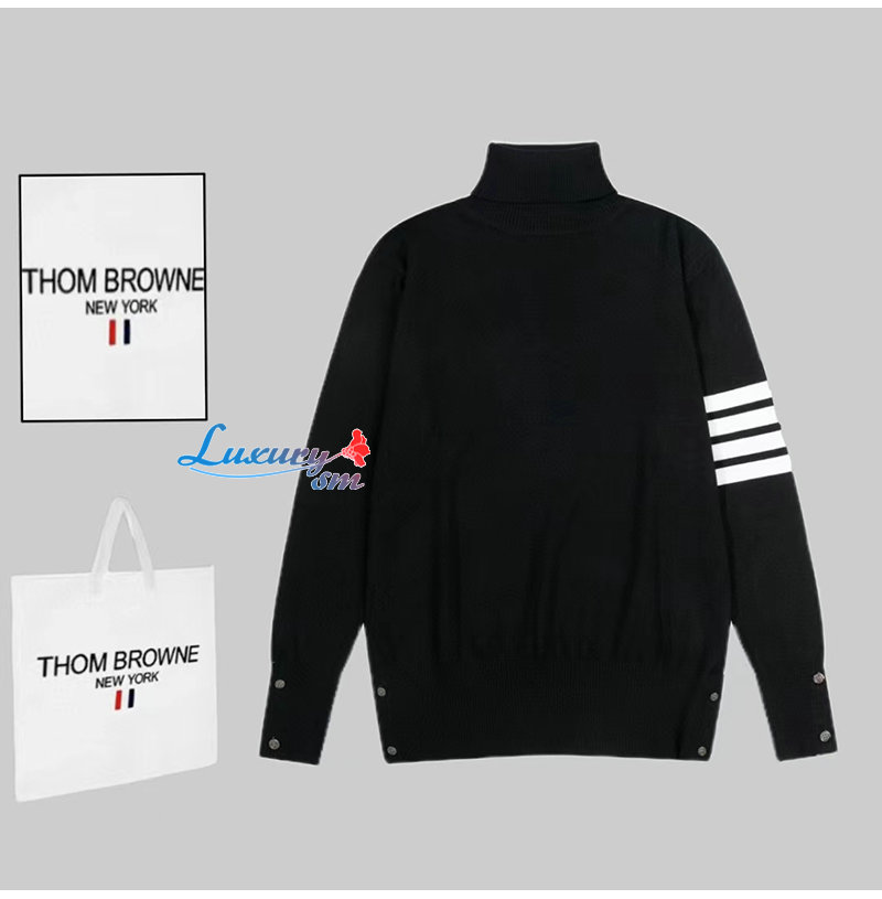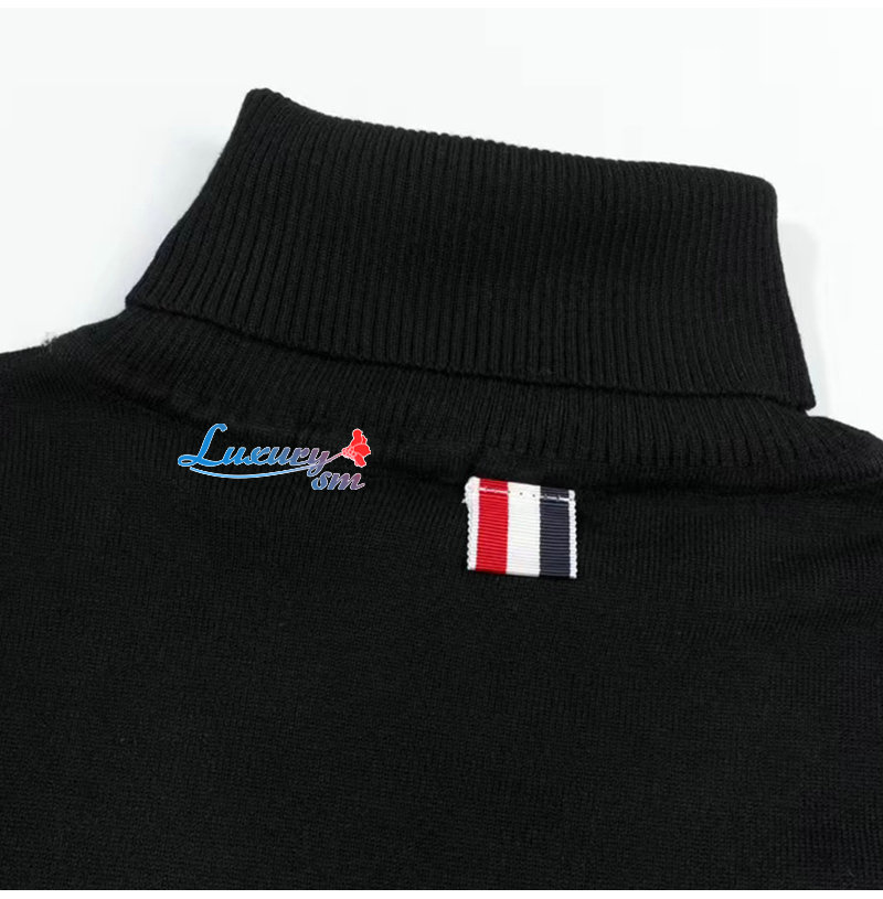 THOM BROWNE-10108 톰 브라운 블랙 스트라이프 장식 목폴라 티셔츠 남여공용