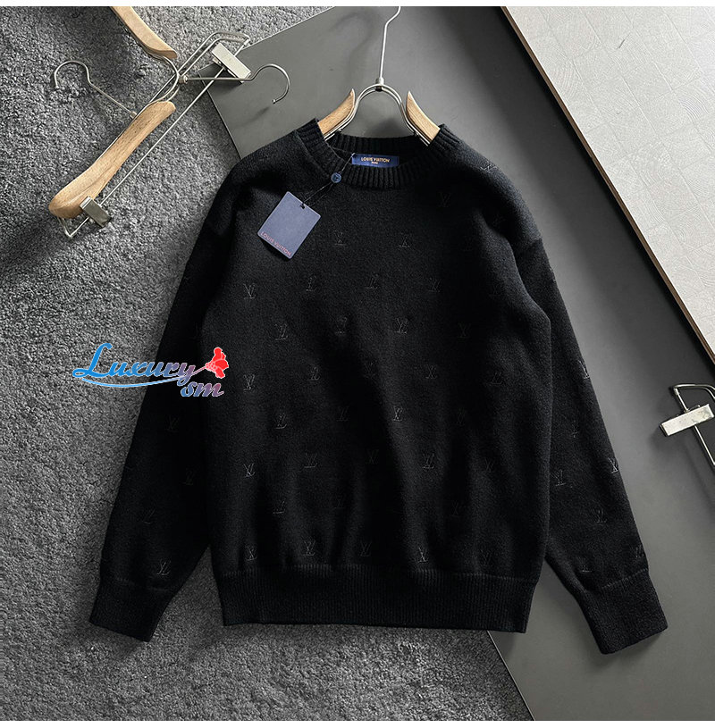 LOUIS VUITTON-12153 루이비통 블랙 LV 시그니처 아플리케 장식 스웨터 남성용
