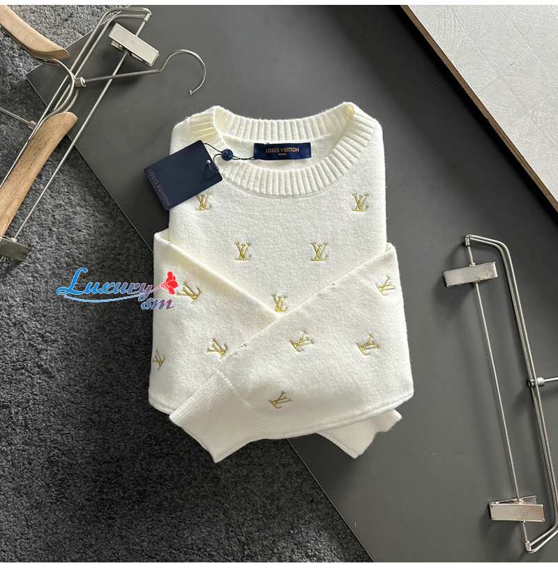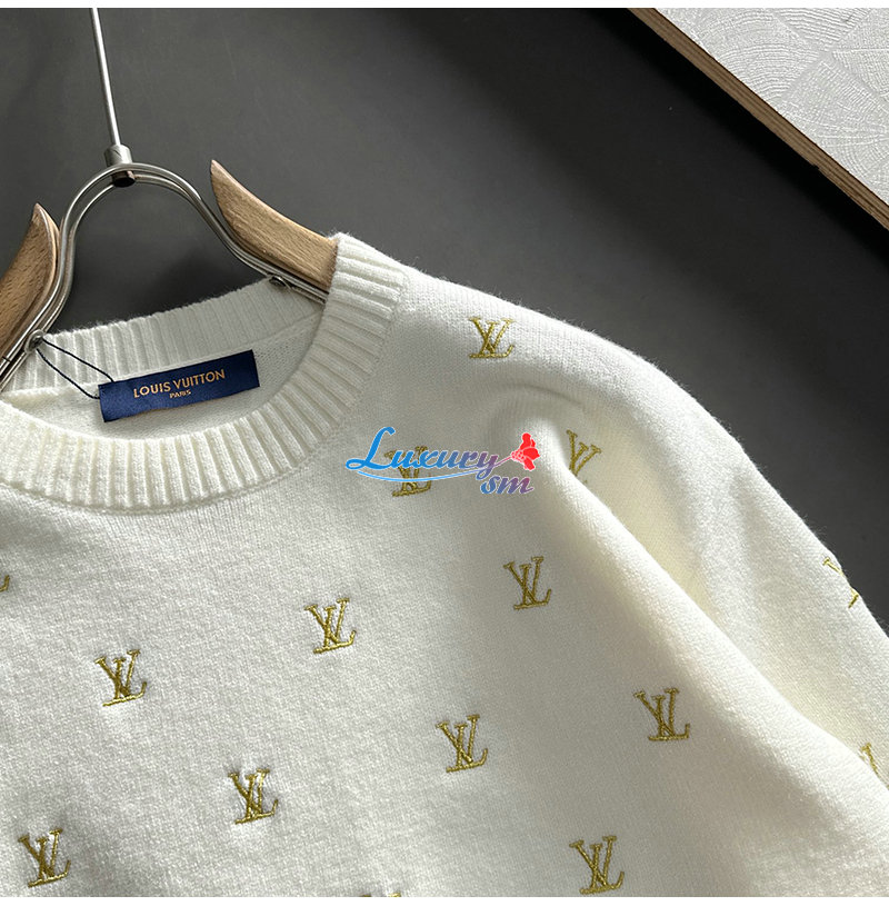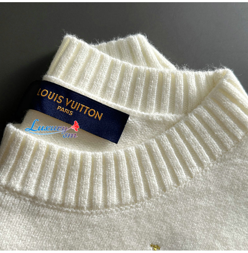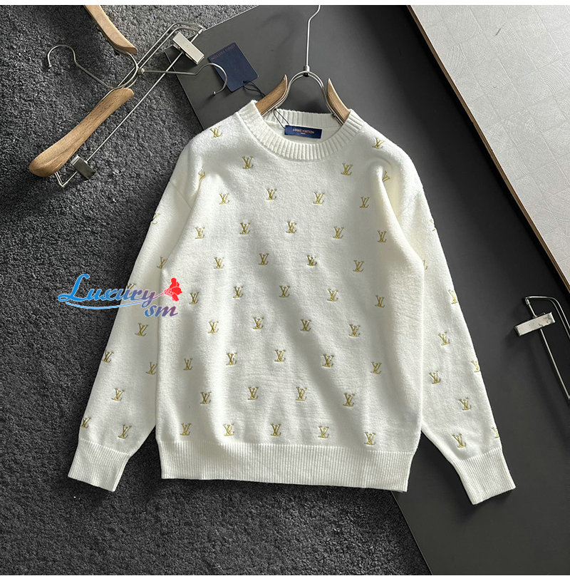 LOUIS VUITTON-12154 루이비통 화이트 LV 시그니처 아플리케 장식 스웨터 남성용