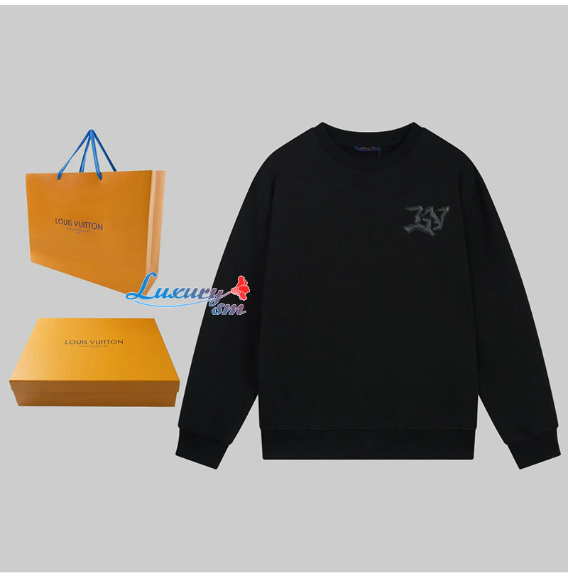 LOUIS VUITTON-12279 루이비통 블랙 LV 시그니처 아플리케 장식 스웨트셔츠 남여공용