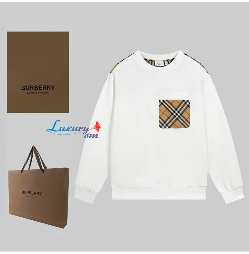 BURBERRY-12275 버버리 화이트 체크 무늬 장식 스웨트셔츠 남여공용