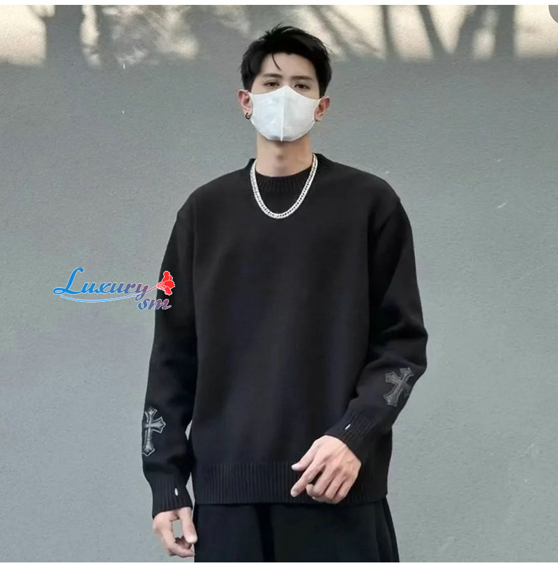 CHROMEHEARTS-01014 크롬하츠 블랙 아플리케 장식 스웨터 남여공용