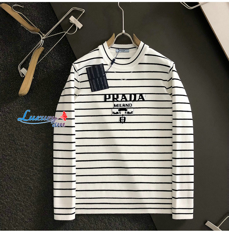PRADA-01057 프라다 화이트/블랙 스트라이프 스웨터 남성용